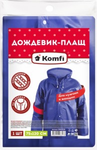 Купите товар «795526 Дождевик (плащ на кнопках) 75*120см, EVA, 110мк, синий (капюшон) 140гр EVA005B Komfi» по оптовой цене с доставкой или самовывозом. В Екатеринбурге и других городах.