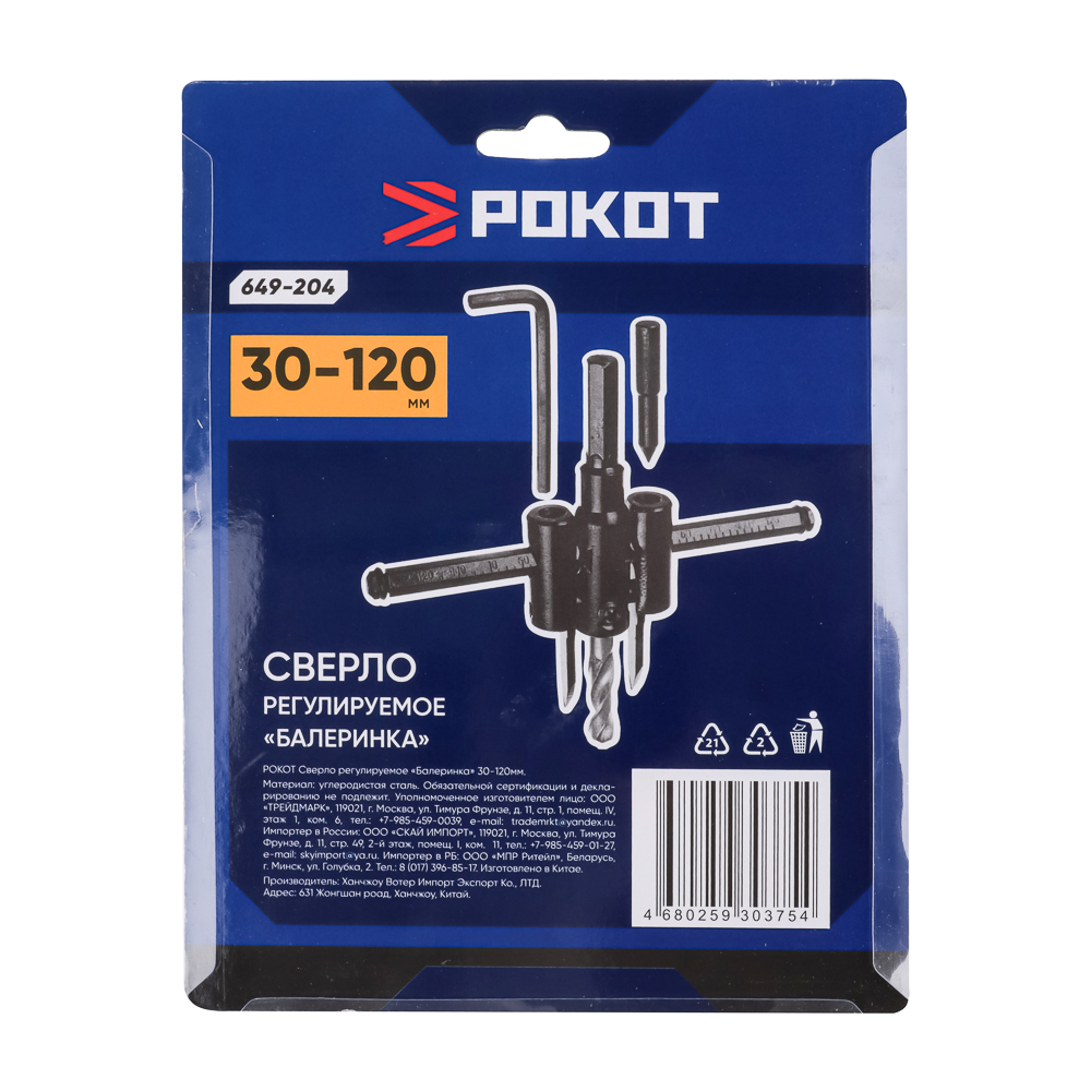 Сверло " Балерина" от бренда РОКОТ представляет собой регулируемую конструкцию из углеродистой стали, предназначенную для высверливания больших отверстий диаметром от 30 мм до 120 мм в различных материалах. Особенностью данного сверла является его конструкция, включающая в себя две режущие пластины, которые перемещаются по направляющим относительно сверла-сердечника. Это позволяет точно настроить необходимый диаметр отверстия. Пластины крепятся к основанию сверла при помощи винтов. Важной особенностью сверла является наличие горизонтальной направляющей, которая обеспечивает точное и плавное перемещение режущих пластин относительно сверла. Это позволяет избежать перекосов и обеспечивает равномерное высверливание отверстий. В комплект поставки сверла входит ключ, который предназначен для настройки и фиксации необходимого расстояния между режущими пластинами и сверлом-сердечником. Ключ позволяет быстро и точно выставить необходимое расстояние, что упрощает процесс настройки сверла и ускор