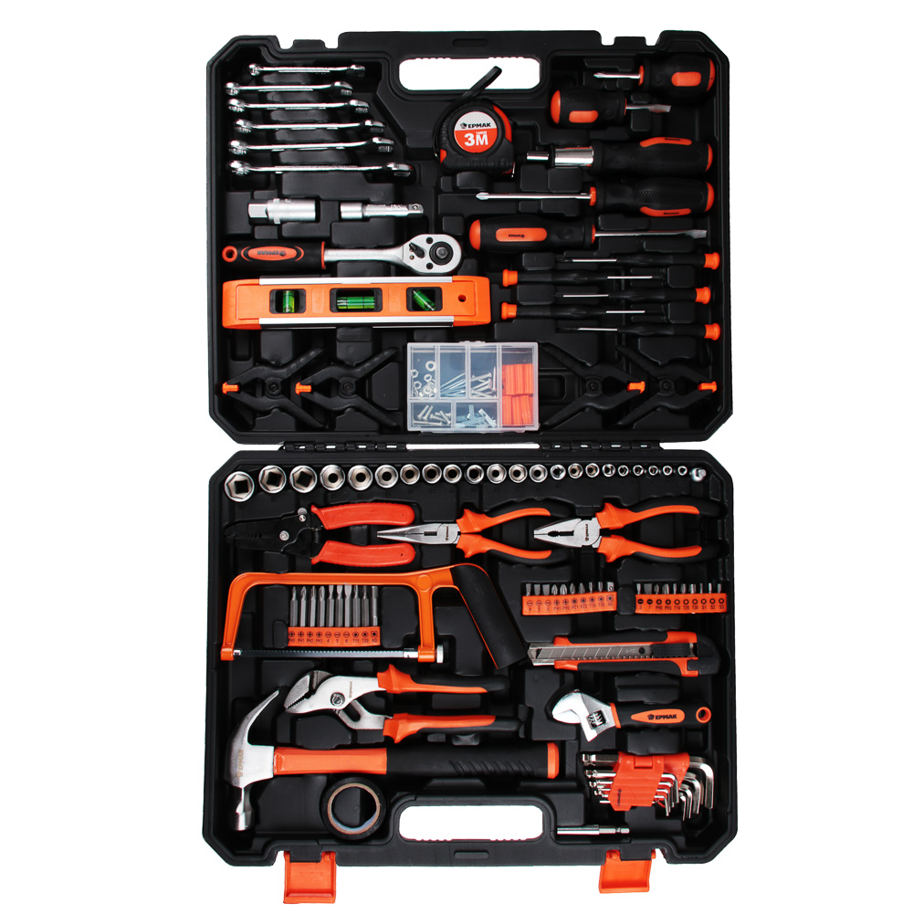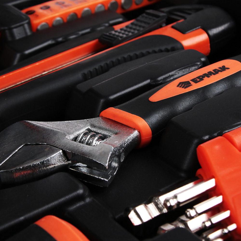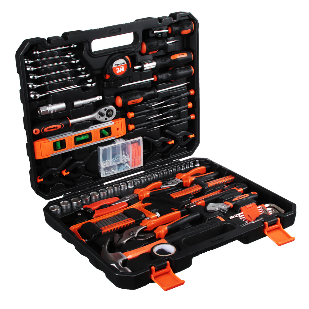 Набор профессионального инструмента ЕРМАК - надежный и практичный комплект, предназначенный для ремонтных работ и обслуживания вашего автомобиля. Изделия набора изготовлены из хромованадиевой и инструментальной стали, что гарантирует работу при больших нагрузках и долгий срок службы. Эргономичные ручки способствуют удобному хвату во время работы. Пластиковый кейс обеспечит компактное хранение и удобную транспортировку.