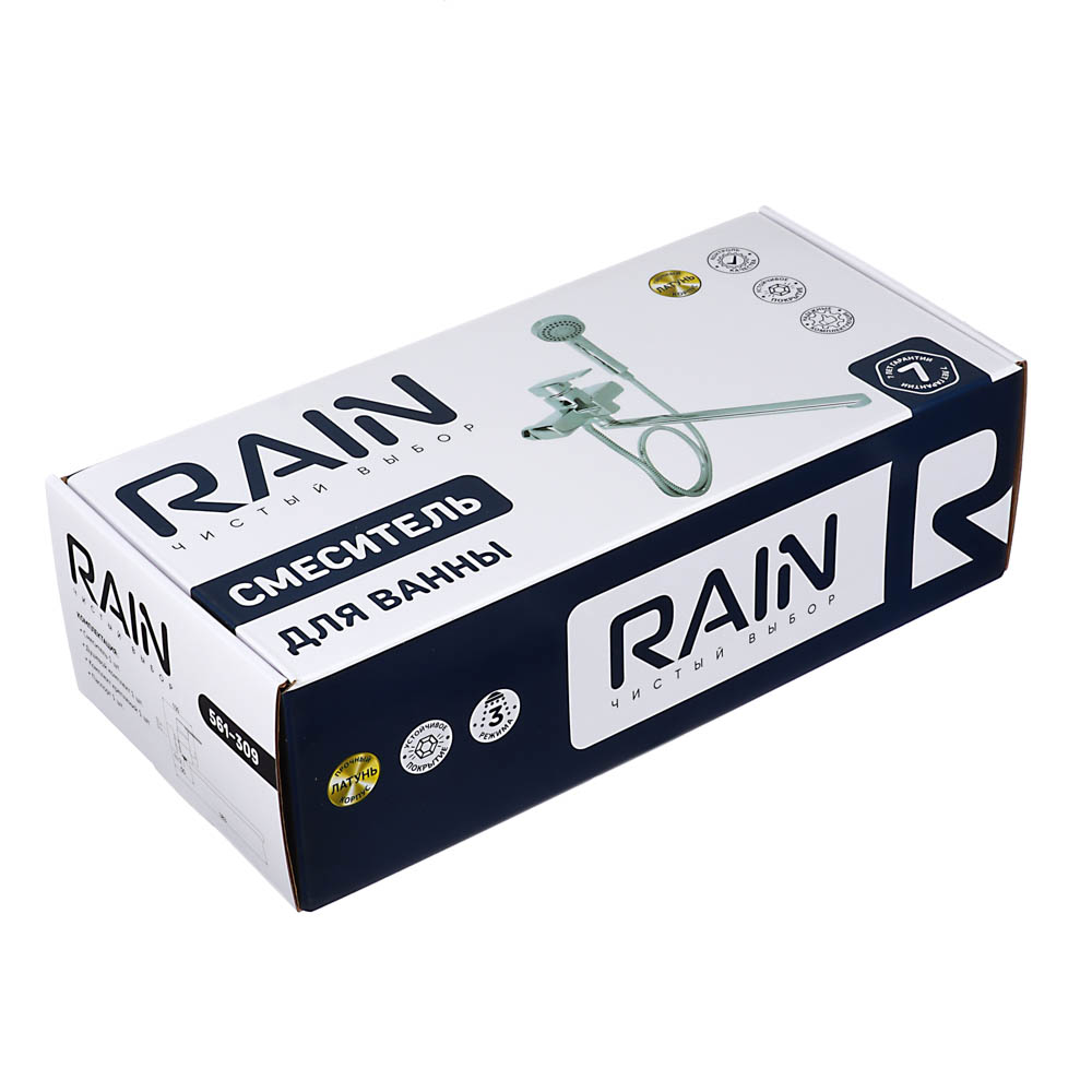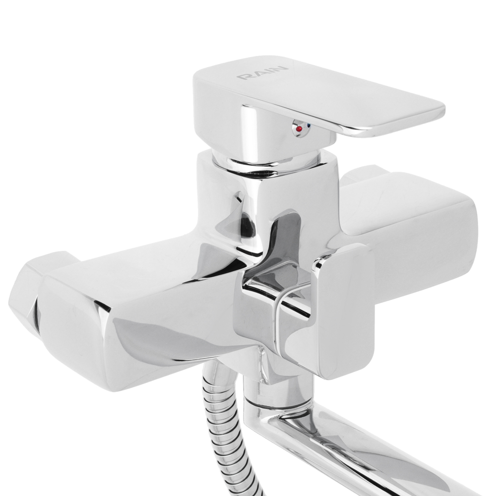 Смеситель для ванны Кремний от Rain - это смеситель с душем. Рычажный - удобно регулировать температуру и напор воды одной рукой. Прямой излив, длина 35 см - с ним удобно набирать воду в ванну и емкости. Картридж 35 мм - не шумит, дает хороший напор воды. Смеситель из латуни - служит долго, не ржавеет, не боится перепадов температуры воды, не выделяет вредные вещества. Хромированный. Лейка душа с переключателем режимом подачи воды. С держателем для лейки. Держатель крепится на стену.