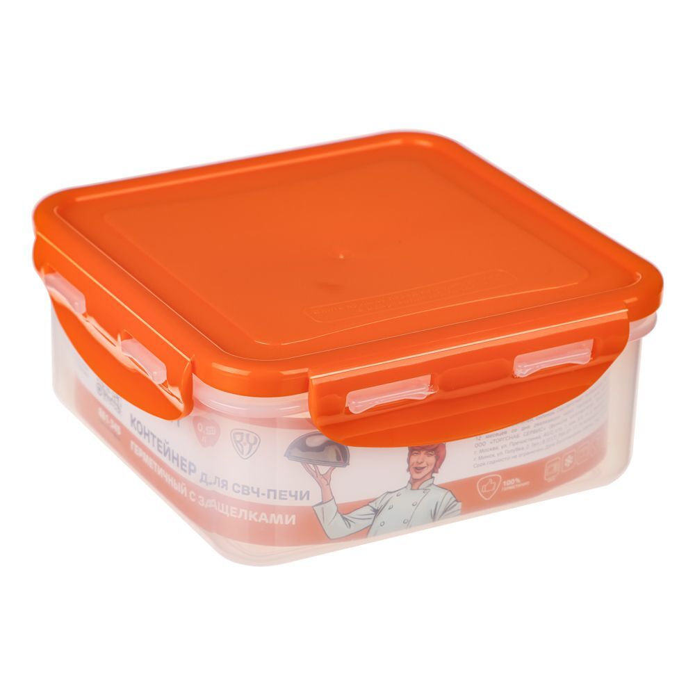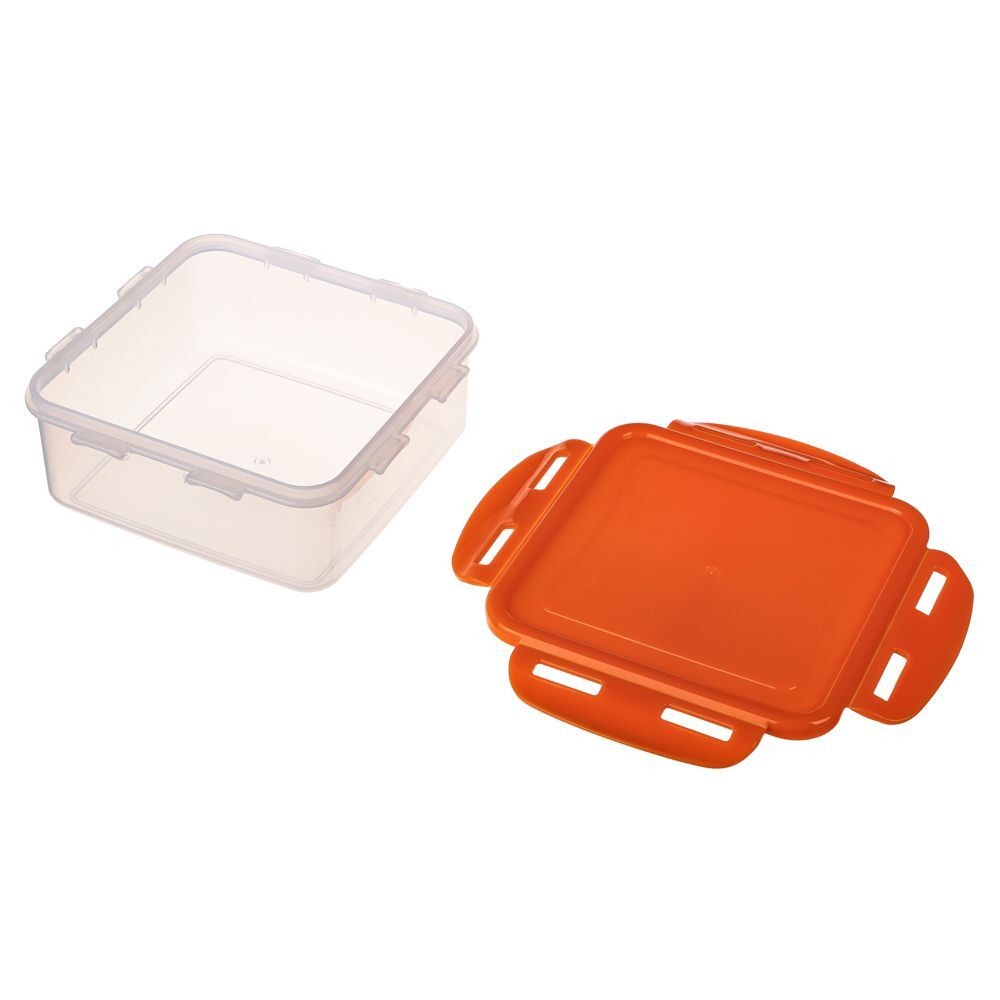 Контейнер герметичный квадратный для СВЧ с защелками РЫЖИЙ объемом 0,9 л – емкость для хранения и разогрева еды, которая значительно продлевает хранение готового блюда. Высококачественный пищевой пластик не выделяет вредных компонентов, а антибактериальный компонент замедляет рост и размножение микроорганизмов, в результате продукты хранятся до двух раз дольше. Силиконовый уплотнитель и специальные зажимы препятствуют доступу кислорода внутрь контейнера, за счет чего достигается 100%-ная герметичность. Подходит для СВЧ-печи и морозильной камеры.