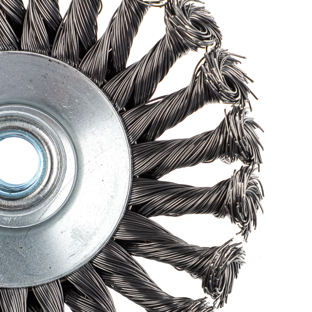 Металлическая щетка для УШМ ЕРМАК «Тарелка» крученая диаметром 125 мм с посадочной шайбой M14 – долговечная, надежная и практичная насадка для УШМ, которая применяется для работы по металлу. Зачищает острые углы заготовок, удаляет грязь и ржавчину, корректирует швы после сварки. Прекрасно сохраняет форму, обладает высокой жесткостью и оснащена усилительным кольцом, которое продлевает срок службы изделия. Устойчива к коррозии.