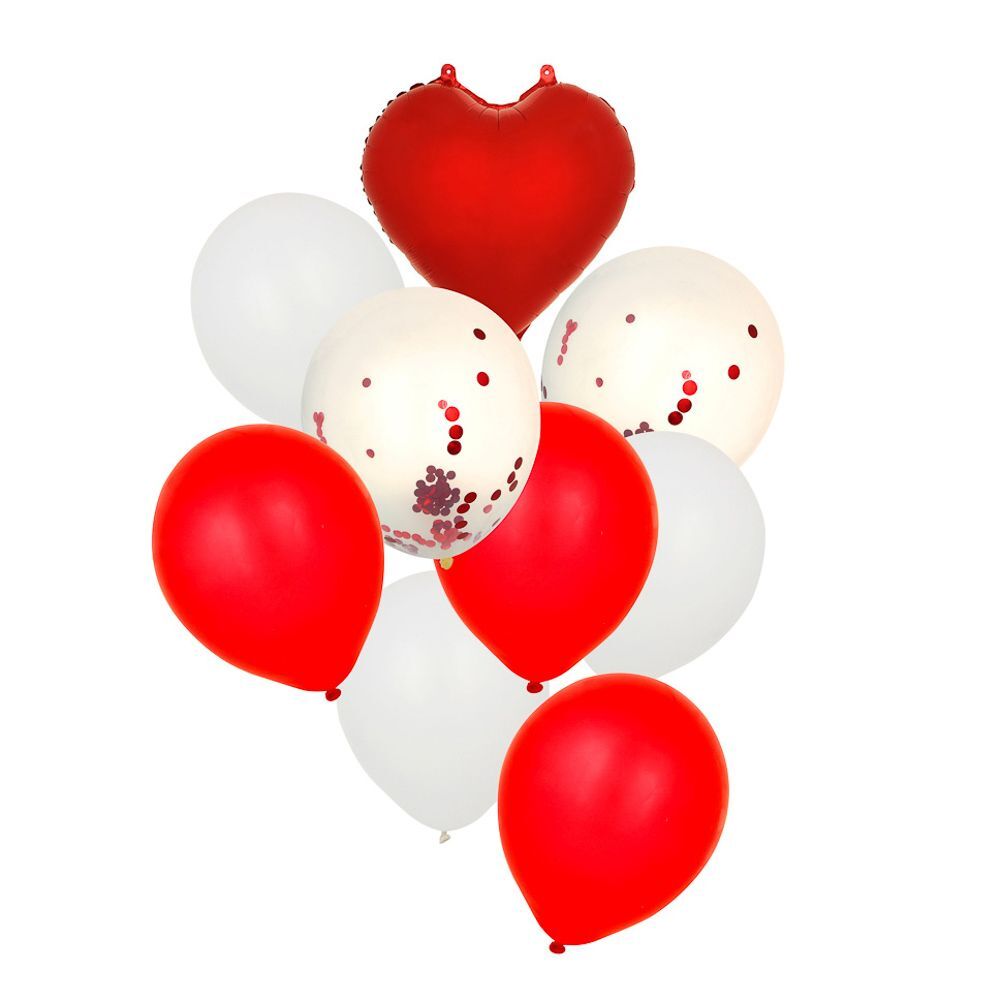 Набор воздушных шаров FNTASTIC из 9 штук – идеальный выбор для украшения помещения по случаю помолвки, свадьбы или годовщины бракосочетания. Большой шар в форме сердца выполнен из фольги, а остальные – из латекса. Сочетание из 2-х цветов будет смотреться стильно и оригинально, придавая банкетному залу или комнате торжественный вид.