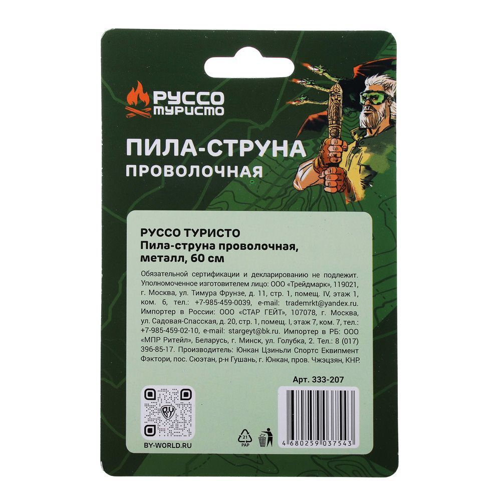 Универсальная компактная пила-струна предназначена для комплектации индивидуального туристического снаряжения, а так же для выполнения простейших и не сложных работ по заготовке древесины.
