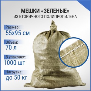 Купите товар «894895 Мешки полипропилен 55*95см зеленый 50кг с этикеткой (цена за шт) (1000шт)1-2.SALE E1M» по оптовой цене с доставкой или самовывозом. В Екатеринбурге и других городах.