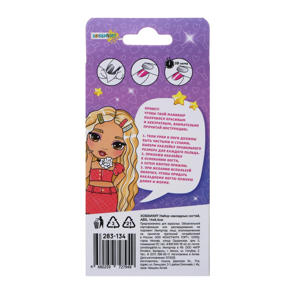 Наклейки на ногти объемные ХОББИХИТ помогут вам создавать уникальные дизайны ногтей, превращая каждый маникюр в произведение искусства без больших временных затрат. Отлично держатся на ногтевой пластине и смотрятся очень оригинально. Для лучшей фиксации после нанесения наклейки необходимо покрыть ноготь прозрачным лаком. Размер упаковки 14х6,4см. В наличии 10 дизайнов на выбор. Возрастное ограничение 18+.