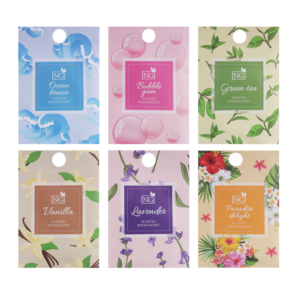 Ароматизатор - Саше от бренда NEW GALAXY 20 г - безопасный, экологически чистый, натуральный сухой ароматизатор помещения, белья, салона автомобиля. Прекрасная альтернатива ароматизированным спреям, от которых чаще бывает аллергия. Очень прост в применении. Имеет стойкий и длительный аромат. Ароматы в ассортименте: ваниль, лаванда, зеленый чай, океан райское наслаждение, бабл гам.