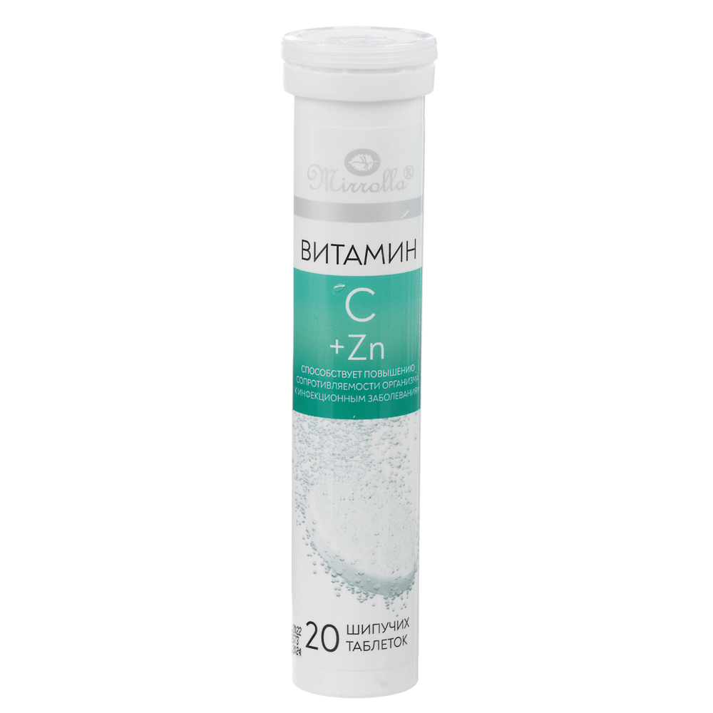 БАД от «Мирролла» Витамин С 500 мг + цинк 25 мг в виде шипучих таблеток применяется для укрепления иммунитета и повышения сопротивляемости организма к сезонным инфекционным заболеваниям. Цинк способствует регенерации кожных покровов, нормализации деятельности нервной системы, положительно влияет на репродуктивную функцию. Таблетки быстро растворяются в воде. 20 штук в упаковке.