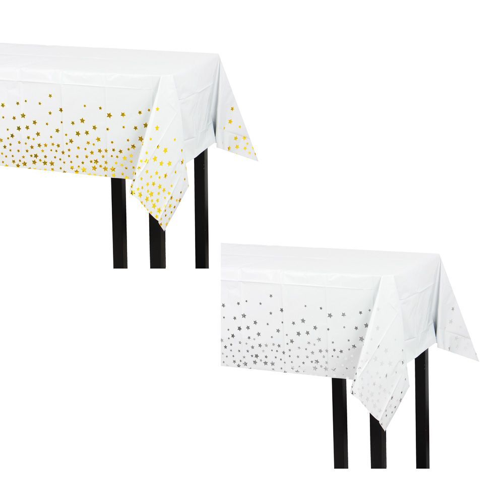 Праздничная скатерть - незаменимая вещь на вечеринке. Она надежно защищает поверхность стола от грязи, легко стирается и практически не мнется. Кроме того, сам стол всегда будет чистый и без повреждений, а испорченную скатерть всегда можно заменить на новую. Праздничная скатерть FNtastic размером 137x183 см с фольгированным слоем добавит ярких красок на любое торжество.