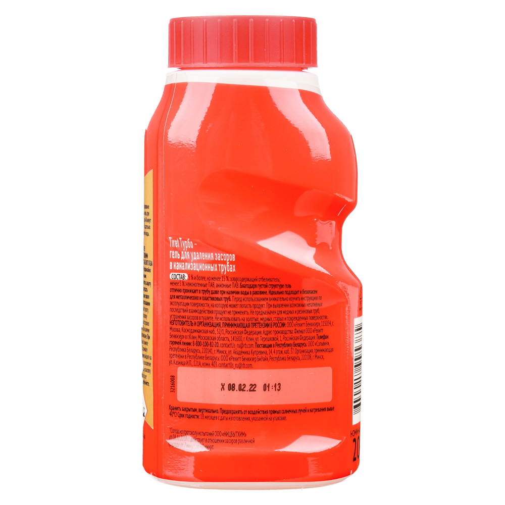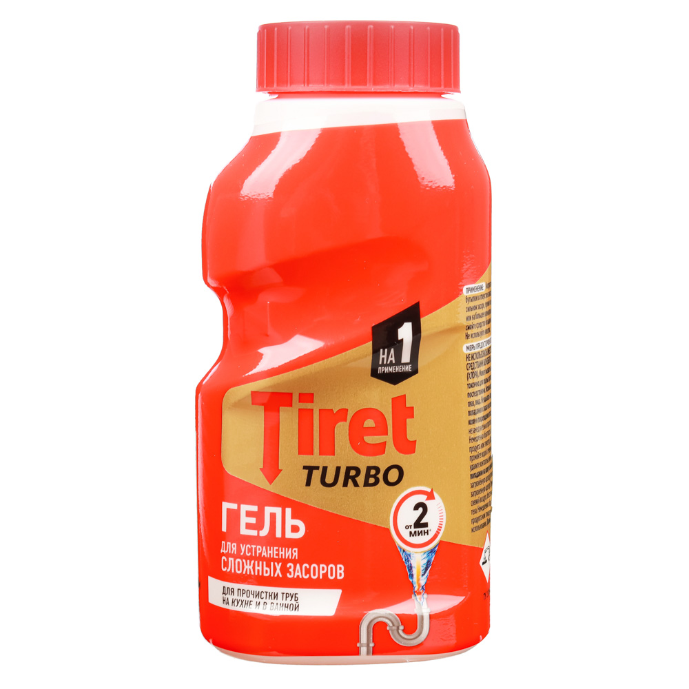 Tiret Turbo эффективно и быстро справляется даже с очень сложными засорами, а густая формула геля позволяет средству проникать в трубы даже в стоячей воде. Компактная упаковка продукта, рассчитанная на 1 применение, очень удобна использовании, и не будет занимать много места дома. Преимущества:• Действует от 2 минут• Продукт, рассчитанный на одно применение• Не занимает много места, удобно хранить дома• Идеально подходит и безопасен для металлических и пластиковых труб