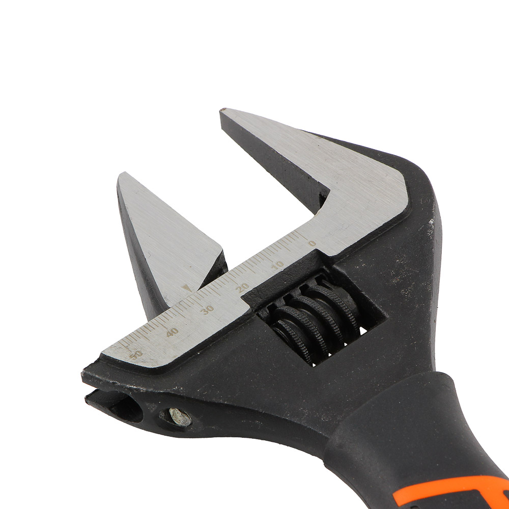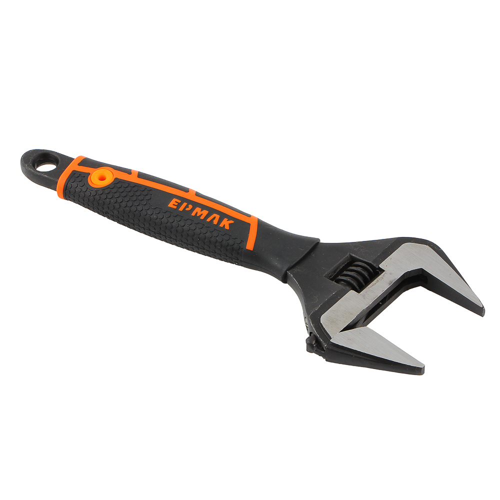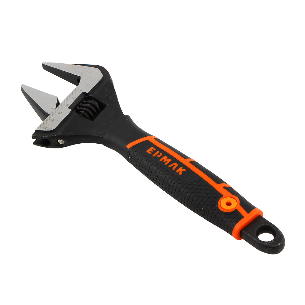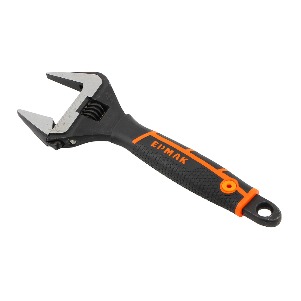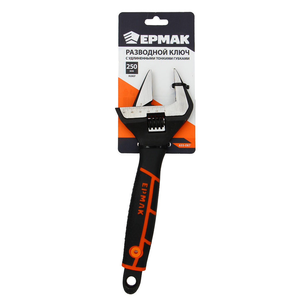 Разводной ключ ЕРМАК с удлиненными тонкими губками 300 мм применяется для монтажа и демонтажа крепежа в процессе сантехнических и других монтажно-ремонтных работ и способен заменить целый набор гаечных ключей. Снабжен мерной шкалой для удобства регулировки степени открытия. Тонкие губки позволяют работать с мелкими деталями, а также облегчают работу в ограниченном пространстве. Высокопрочная сталь не деформируется с течением времени. Прорезиненная рукоять с отверстием для подвеса не натирает ладонь и обеспечивает надежный хват.