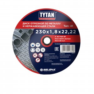 Купите товар «889193 Диск отрезной TYTAN Professional по метал и нерж.стали 230х1,8х22,22,(цена за шт. уп 10шт) арт.28607» по оптовой цене с доставкой или самовывозом. В Екатеринбурге и других городах.