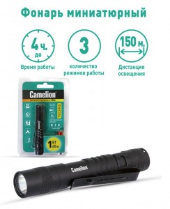 Купите товар «639057 Camelion фонарь ручной LED51516 (1xLR03 в комп.) 1св/д 3W(60lm) алюминий, 3 реж., до 150 м, BL» по оптовой цене с доставкой или самовывозом. В Екатеринбурге и других городах.