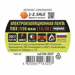 Купите товар «775749 1-2.SALE изолента ПВХ 15/20 ЧЕРНАЯ, 150мкм 0.15х15 мм, 20м ex0108-0029 (РФ)» по оптовой цене с доставкой или самовывозом. В Екатеринбурге и других городах.