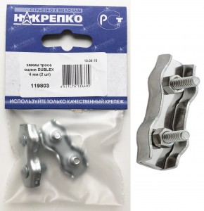 Купите товар «727687 Зажим троса оцинк DUBLEX 4 мм (2 шт BL) (цена за уп) НАКРЕПКО 119803» по оптовой цене с доставкой или самовывозом. В Екатеринбурге и других городах.