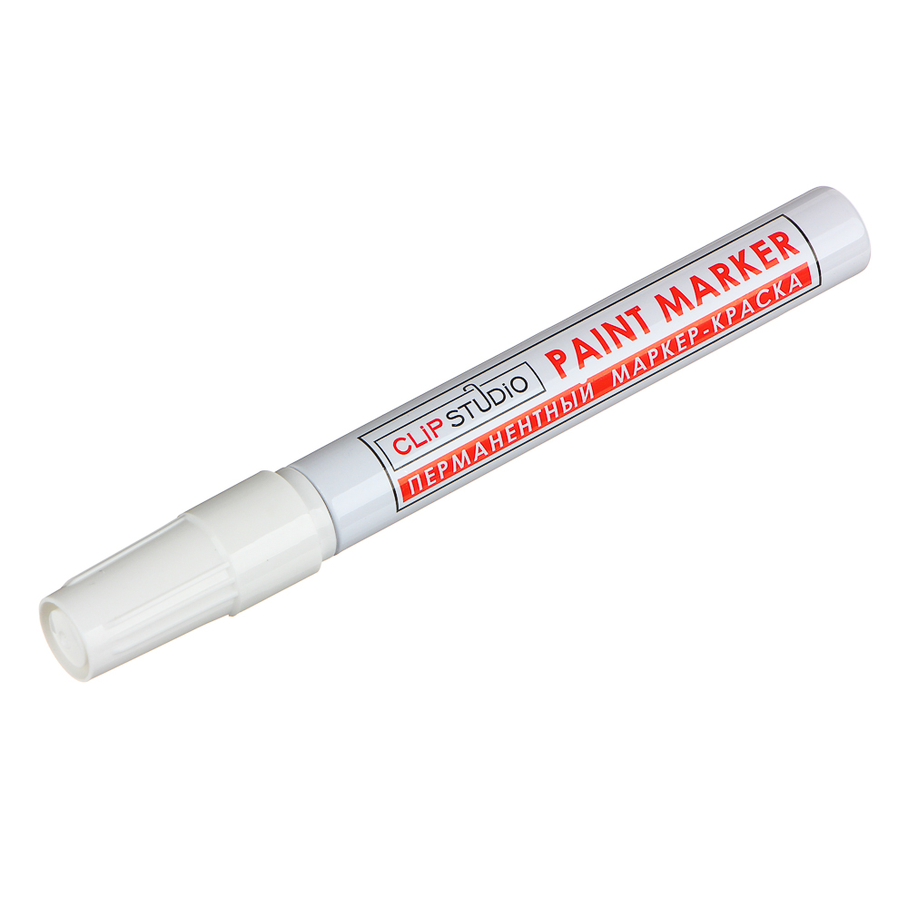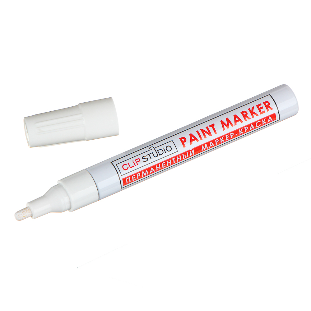 Маркер-краска ClipStudio пишет на всех типах поверхностей: металл, дерево, резина, бетон, стекло, кожа. Цвет чернил - белый, диаметр пишущего узла - 1 мм. Подходит для реставрации дефектов на бытовой технике, обуви, кузове автомобиля, а также надписей на каменных плитах. Маркер-краска имеет широкое применения в дизайне, декорировании и оформлении. Благодаря высококачественным чернилам, краска ложится на поверхность равномерным и однородным слоем, полностью закрашивая обрабатываемую поверхность, быстро сохнет. После высыхания, надписи обладают свето- и водостойкостью, термостойкостью, устойчивостью к механическим воздействиям.