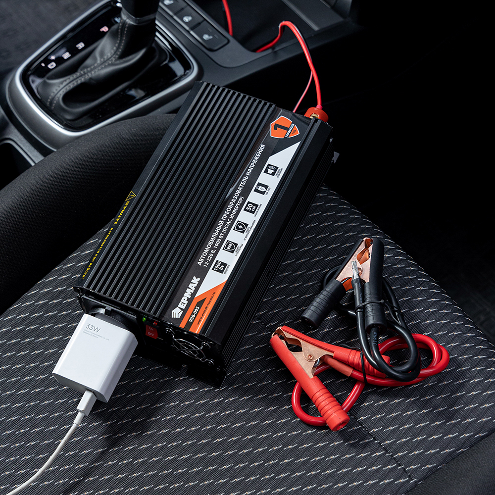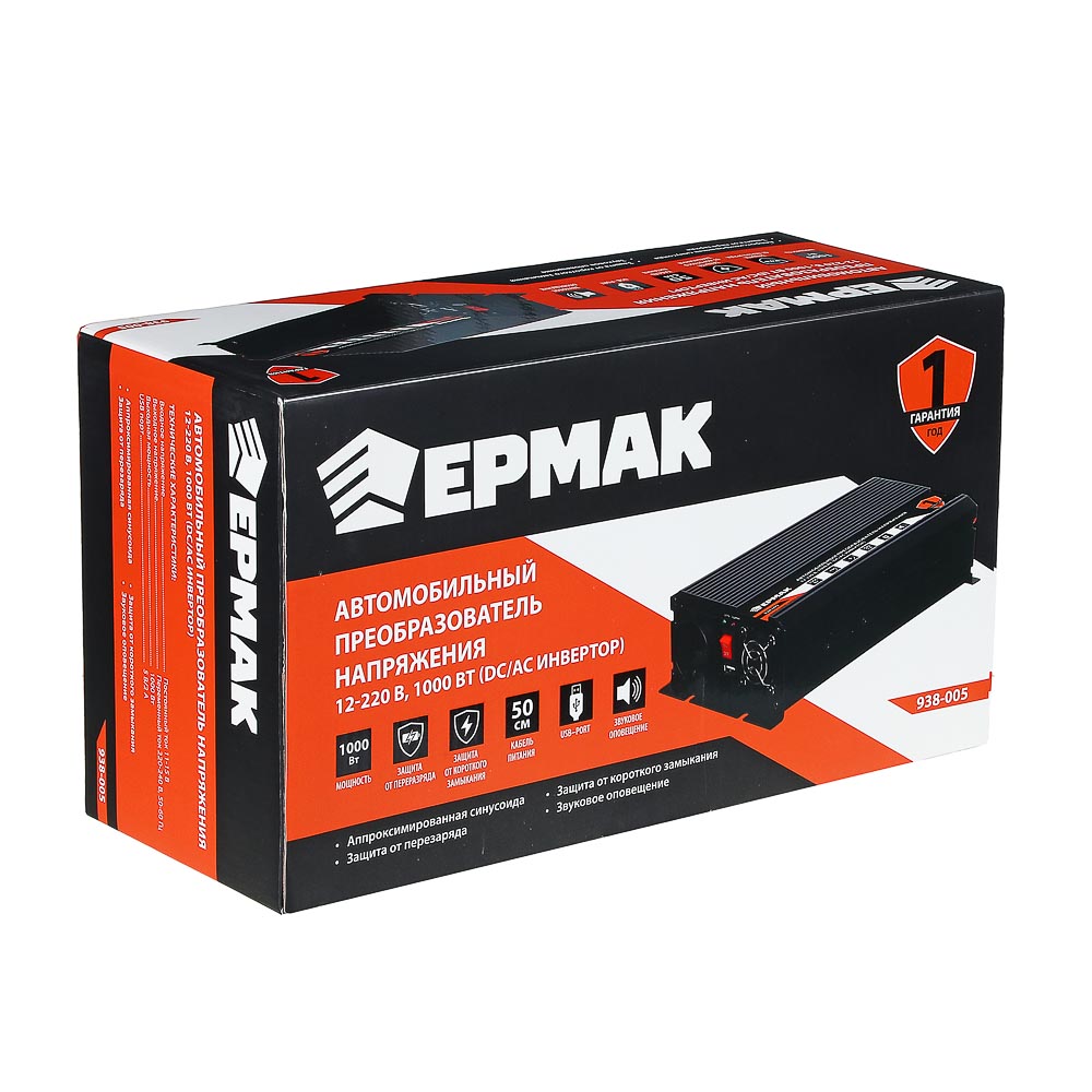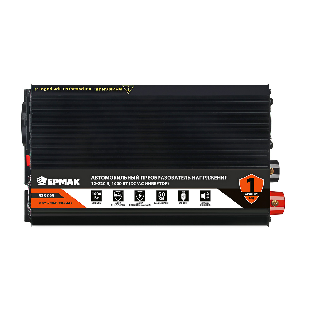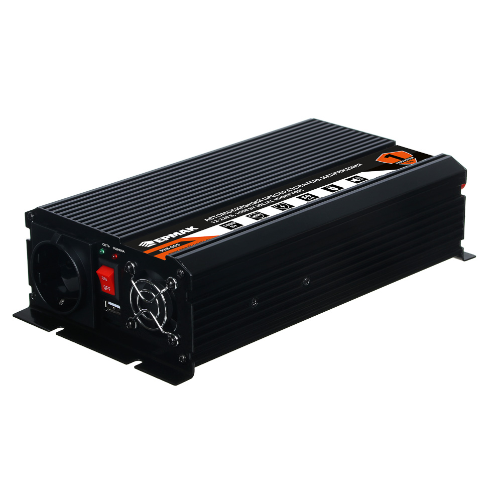 Автомобильный преобразователь напряжения ЕРМАК 12В-220В – это инвертор, предназначенный для питания электроприборов и устройств от бортовой сети автомобиля. Незаменим в поездках, так как позволяет пользоваться привычными предметами техники начиная от электробритвы и заканчивая феном. Модель оснащена защитой от перезаряда и от короткого замыкания, что обеспечивает безопасное использование приборов. Предусмотрена звуковая индикация режимов работы, а также USB-порт. Длина кабеля питания – 50 см.
