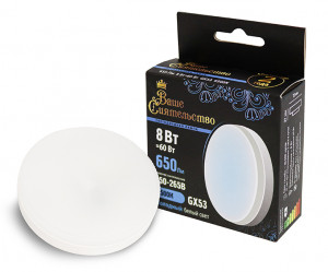 Купите товар «866992 ВАШЕ СИЯТЕЛЬСТВО лампа св/д GX53 8W(650lm) 6500K 6K 73x27 матов, пласт/алюм. IC-драйвер 2г cz866992» по оптовой цене с доставкой или самовывозом. В Екатеринбурге и других городах.