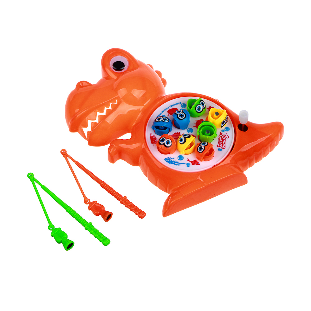Игровой набор рыбалка «Дино» поможет ребёнку почувствовать себя настоящим рыбаком. Сюжетно ролевая игра способствует развитию воображения, познавательного мышления и моторики. Заводите моторчик и основа с рыбками начинает крутиться, голодные рыбки открывают и закрывают рты. Скорее лови их! В комплекте: 1 основа-динозаврик , 2 магнитные удочки, 8 рыбок. Размер динозаврика - 24х16,5х4 см, рыбка - 2х1,5х1 см .