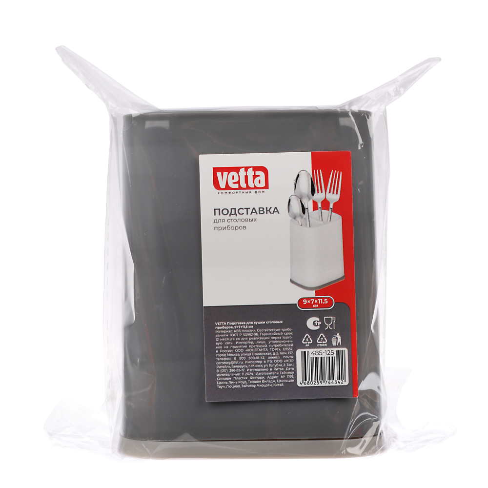 Подставка для сушки столовых приборов VETTA – это компактный стакан с двумя отсеками, который займет минимум места на кухне и поможет организовать порядок. Изделие из пластика имеет дренажные отверстия для стока воды и поддон, поэтому столовые приборы будут быстро высыхать и оставаться сухими во время нахождения в подставке. Изделие устойчивое, легко моется. Доступно 3 цвета: бежевый, серый, белый.