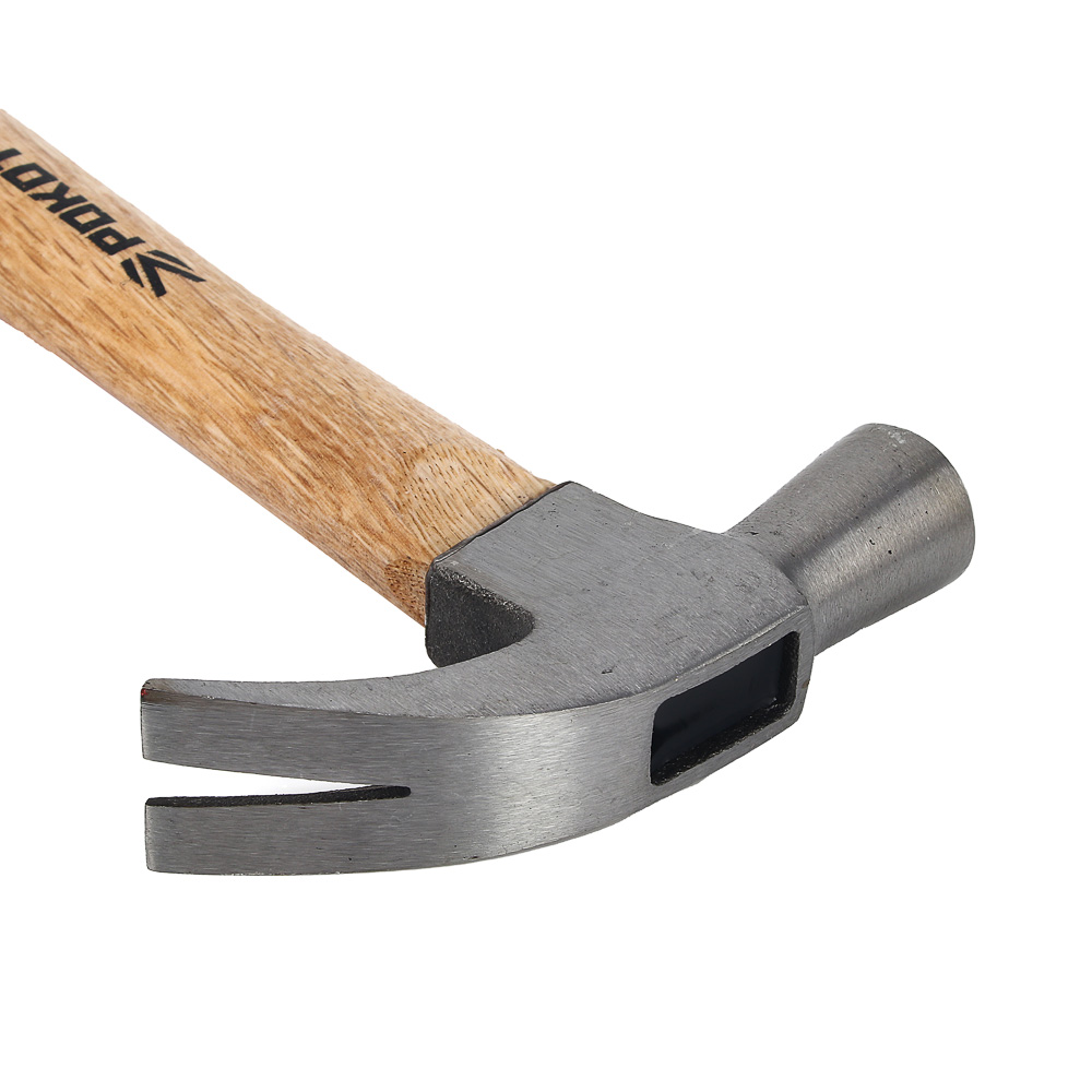 Молоток-гвоздодер от компании РОКОТ 225 г с деревянной ручкой. Служит для забивания гвоздей, подгонки стыков конструкций при сборке, извлечения гвоздей из дерева. Боёк выполнен из инструментальной стали CS45. На обратной стороне имеется гвоздодер. Твердость бойка: 50-54 HRC.
