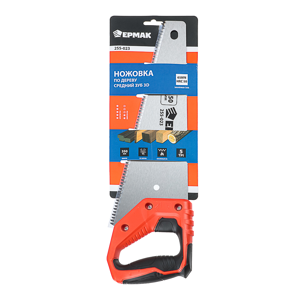 Ножовка по дереву ЕРМАК «Средний зуб 3D» – это столярно-слесарный инструмент с длиной рабочего полотна 350 мм, предназначенный для распила древесины различной твердости. Шаг между зубьями – TPI 5. Средний размер зуба 5 мм обеспечивает хорошее качество реза и достаточно быструю скорость пропила. 3D-заточка зубьев представляет собой трехгранную заточку, которая отличается не только улучшенными характеристиками реза, но и дольше сохраняет остроту. Закаленная сталь 65MN с твердостью HRC 50 имеет высокие показатели износостойкости и рассчитана на длительный срок службы. Нескользящая рукоять удобно ложится в руку.
