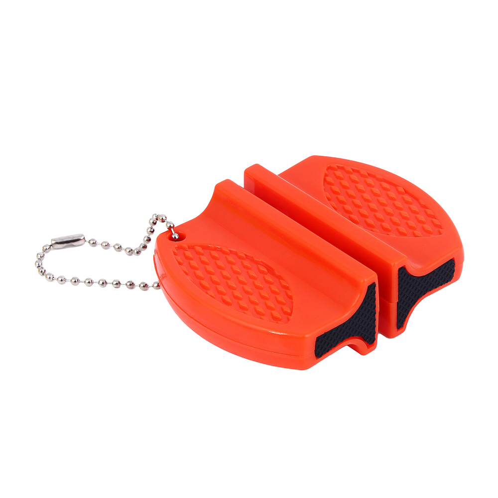 Точилка для ножей и ножниц ЕРМАК – компактный инструмент, который пригодится в быту и в поездках. Имеет две заточные поверхности – из керамики и вольфрамовой стали. Вольфрамовая сталь обладает высокой твердостью, устойчива к износу, прекрасно подходит для обработки изделий из нержавеющей стали. Керамика предназначена для поддержания остроты изделий. Антискользящие накладки на торцах изделия помогают создать удобный и безопасный упор в процессе заточки. Корпус выполнен из прочного ABS-пластика. Изделие оснащено цепочкой-карабином для фиксации на рюкзаке или ремне.