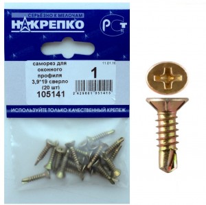 Купите товар «727762 Саморез для оконного профиля 3,9*19 сверло (20 шт BL) (цена за уп) НАКРЕПКО 105141» по оптовой цене с доставкой или самовывозом. В Екатеринбурге и других городах.