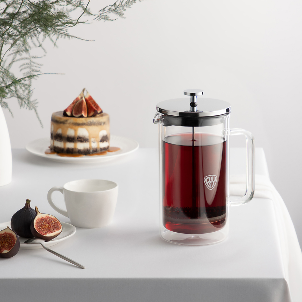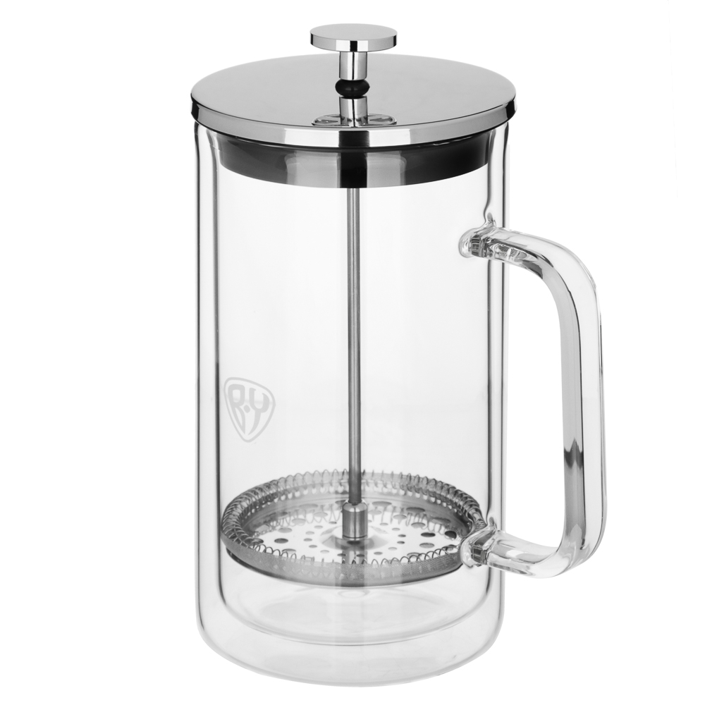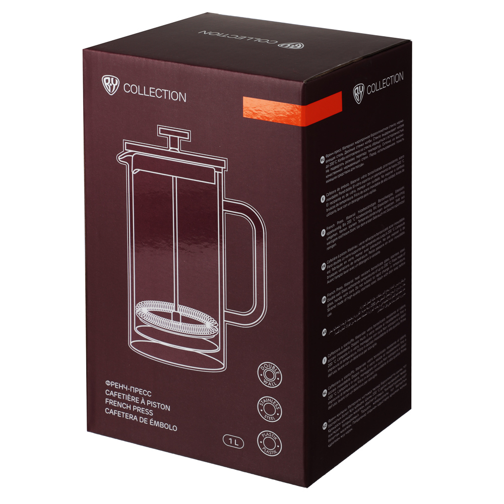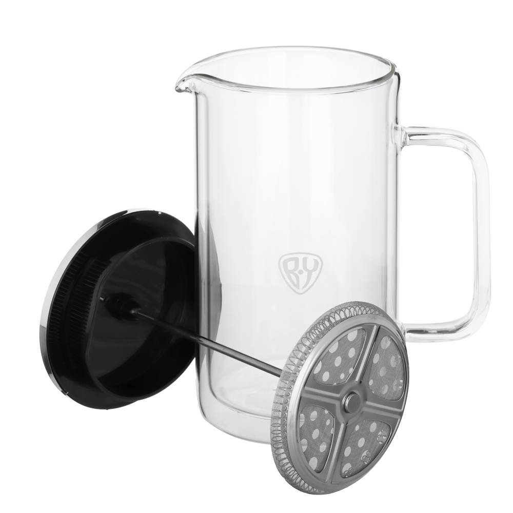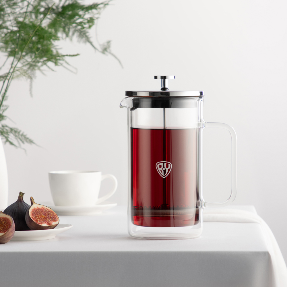 Френч-пресс BY из жаропрочного стекла с двойными стенками – это современный заварочный чайник объемом 1000 мл, который станет украшением кухни и непременно порадует своей продуманной конструкцией. Двойные стенки исключают ожоги рук, а также сохраняют температуру напитка, позволяя получить насыщенный настой. Поршень из нержавеющей стали не подвержен коррозии, не искажает вкус напитков, надежный и долговечный. Френч-пресс идеально подходит для приготовления чая, кофе и травяных напитков.