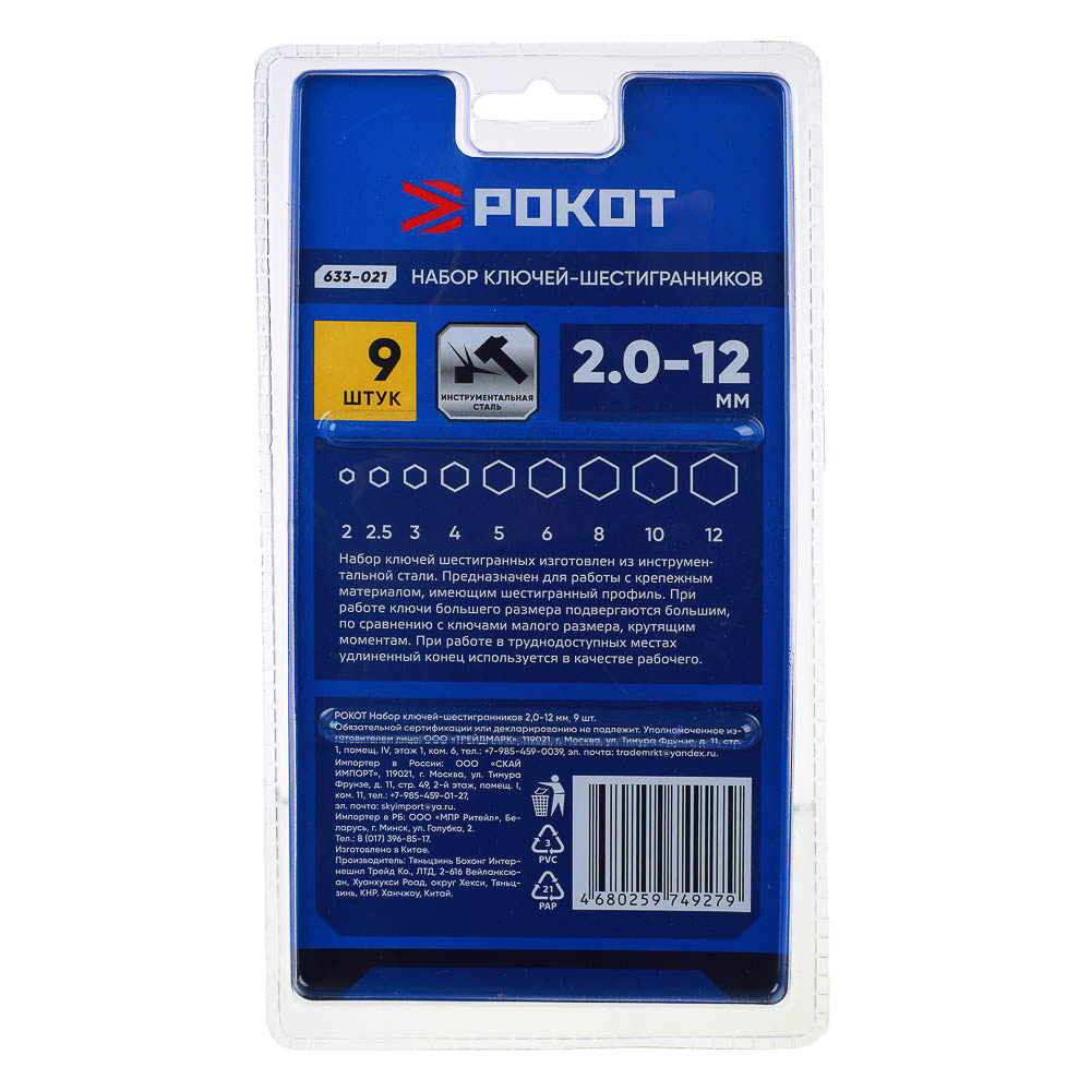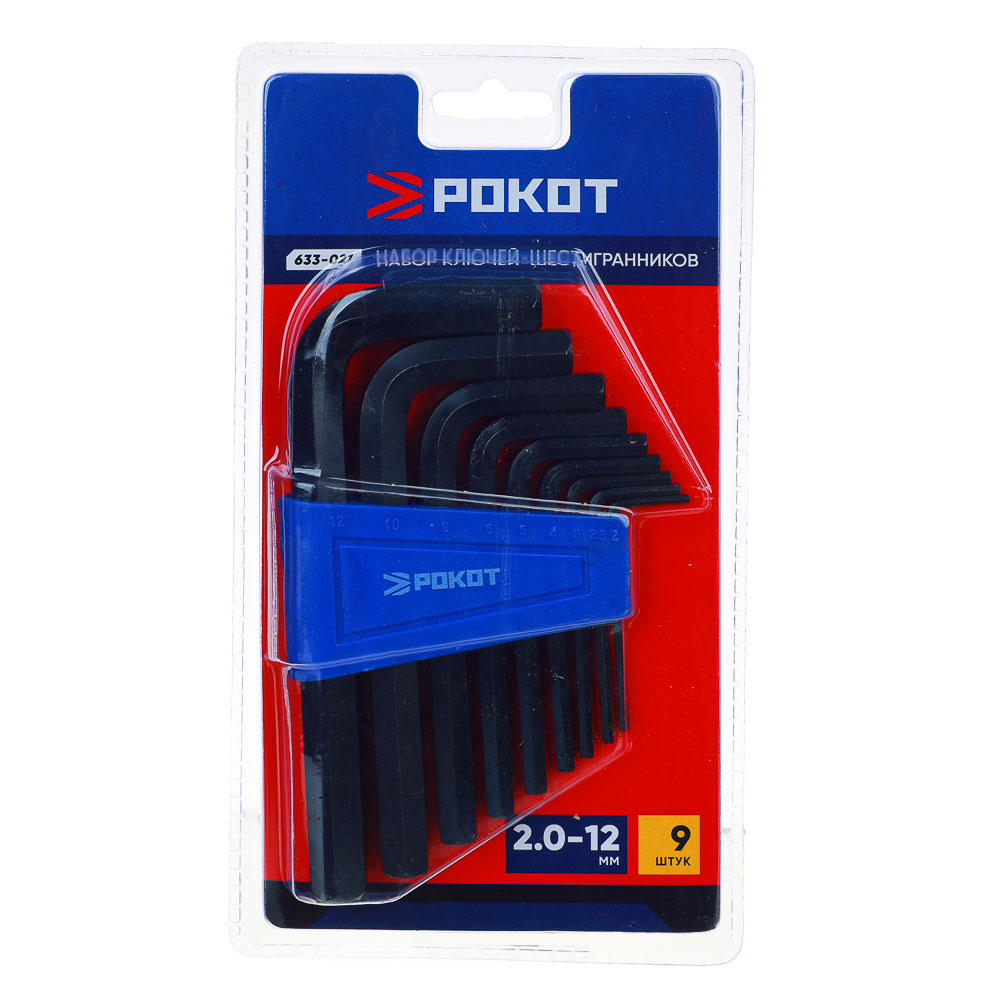 Набор ключей-шестигранников РОКОТ 2.0-12 мм для работы с крепежными элементами включает 9 шестигранников разного размера. Все ключи изготовлены из качественной инструментальной стали, устойчивой к деформации. При работе в труднодоступных местах удлиненный конец может быть использован в качестве рабочего.