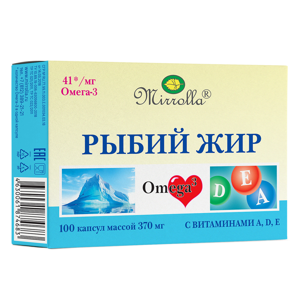 Рыбий жир для сердца и сосудов с витаминами A, D3, E «Мирролла» в капсулах является дополнительным источником Омега-3 жирных кислот и витаминов. Улучшает состояние сердца и сосудов за счет снижения уровня холестерина в крови, применяется для профилактики атеросклероза и заболеваний головного мозга. Способствует поддержанию здорового состояния костей, кожи, волос и ногтей. Предназначен для детей от 14 лет и взрослых. 100 капсул в банке.