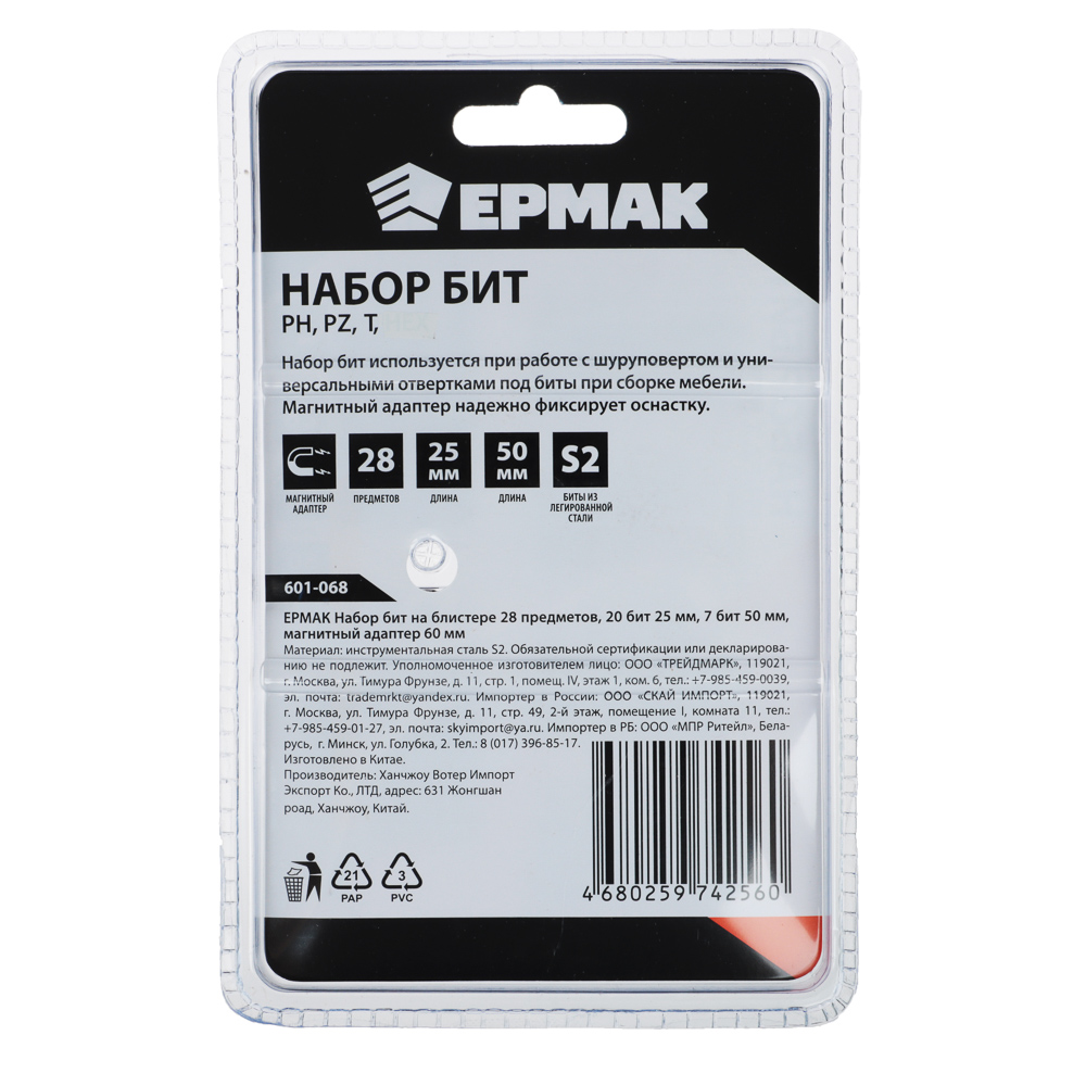 Бита для шуруповерта ЕРМАК в типоразмере на блистере изготовлена из инструментальной стали S2, которая отличается высокой степенью прочности и устойчивостью к сопротивлению. Применяется для закручивания крепежа с винтовой нарезкой: шурупов, саморезов и болтов. Незаменима во время проведения ремонтных работ. Цена за товар указана за блистер из 28 бит.