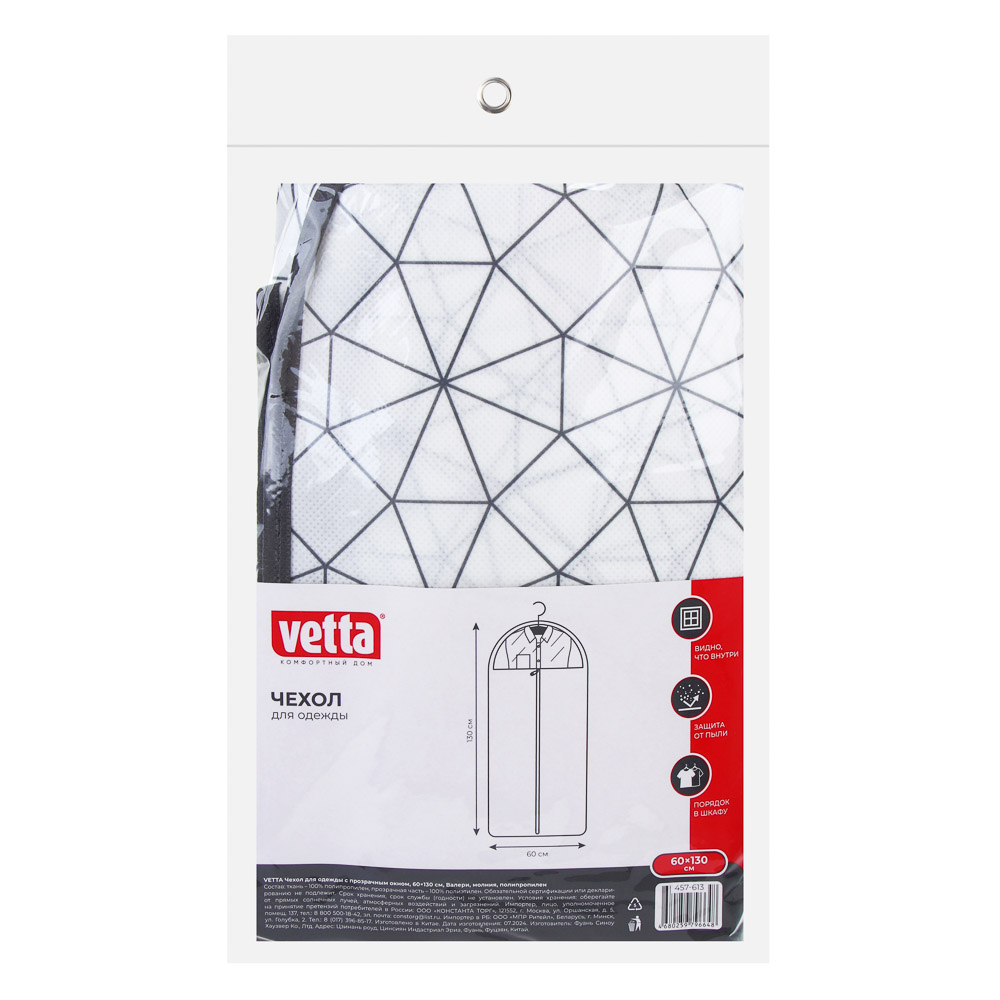 Чехол для одежды с молнией от VETTA из коллекции "Валери" - удобное и практичное изобретение, благодаря которому вещи всегда остаются чистыми и не мнутся. Особенно актуален для путешествий, а дома в нем удобно хранить те предметы гардероба, которые не используются в текущем сезоне. Чехлы защищают вашу одежду от выцветания и насекомых-вредителей. И при этом в вашем шкафу всегда радующий глаз порядок. Размер 60х130 см делает его подходящим для большинства деталей одежды.