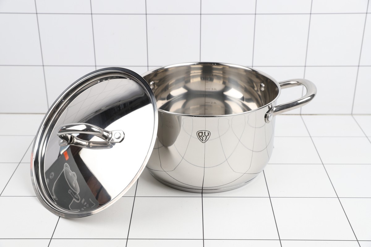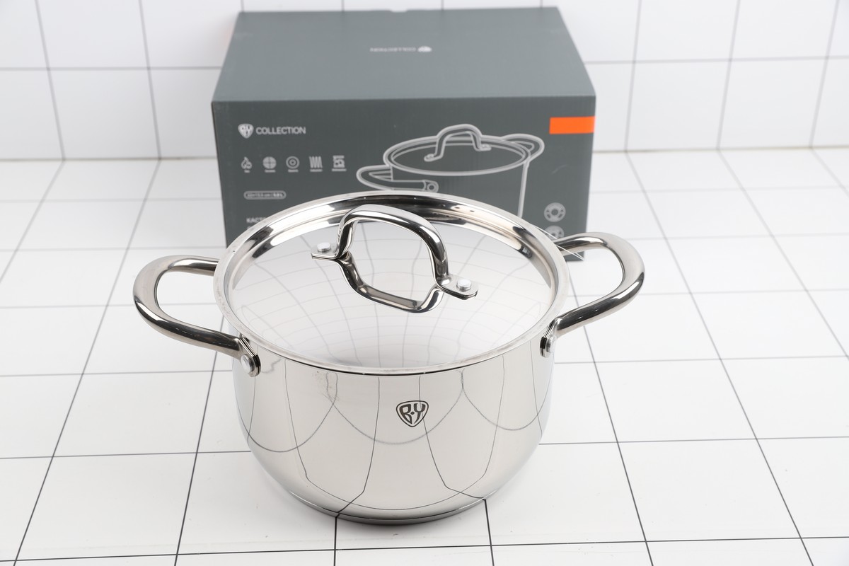 Кастрюля диаметром 22 см и объемом 5 л идеально подойдет для большой семьи. Изготовлена из хромоникелевой стали 304 (18/10), устойчивой к окислению и коррозии. Её можно использовать на плитах любого типа, в том числе на индукционных. Плотно прилегающая крышка из нержавеющей стали ограничивает утечку тепла или пара, идеально подходит для здорового и энергосберегающего приготовления. Толщина дна 3.7мм идеальна для равномерного распределения тепла по всей поверхности кастрюли. Ручки из прочной нержавеющей стали остаются прохладными в течение длительного времени и обеспечивают удобство использования. Подходит для индукционных плит !