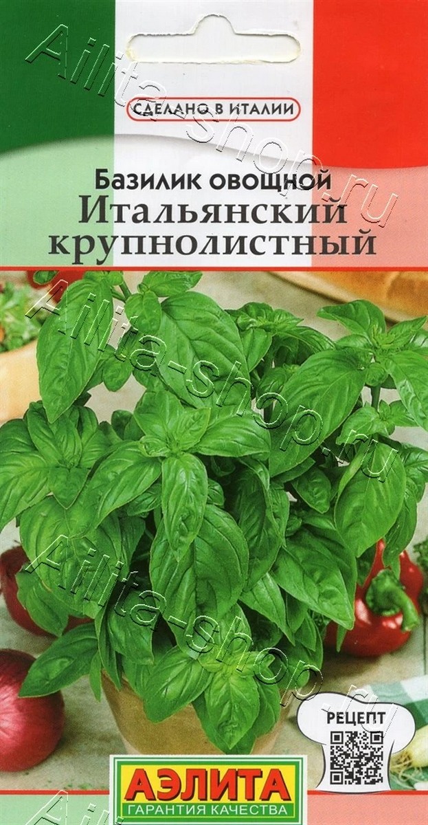 Раннеспелый крупнолистный сорт базилика с насыщенным гвоздичным ароматом. Незаменим в кулинарии в свежем и сушеном виде. В сухих специях вкус и аромат сохраняются, а соусы с добавлением молодых листочков навсегда покорят искушенного гурмана. Растения образуют плотные, крепкие, компактные кустики с большим количеством побегов и листьев. В период начала потребительской годности высота растений около 50-60 см. Срезку зелени начинают до начала цветения, через 40-50 дней от всходов. Удаление цветоносов продлевает период отдачи зеленой массы. В средней полосе выращивают через рассаду, в южных регионах – прямым посевом семян в открытый грунт на глубину 1,5-2 см. Побеги длиной 10-12 см срезают несколько раз до начала цветения.