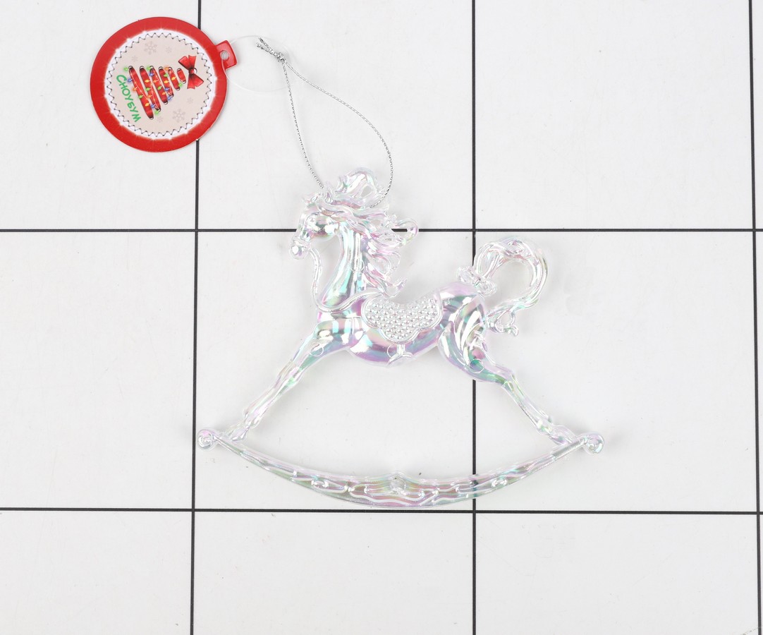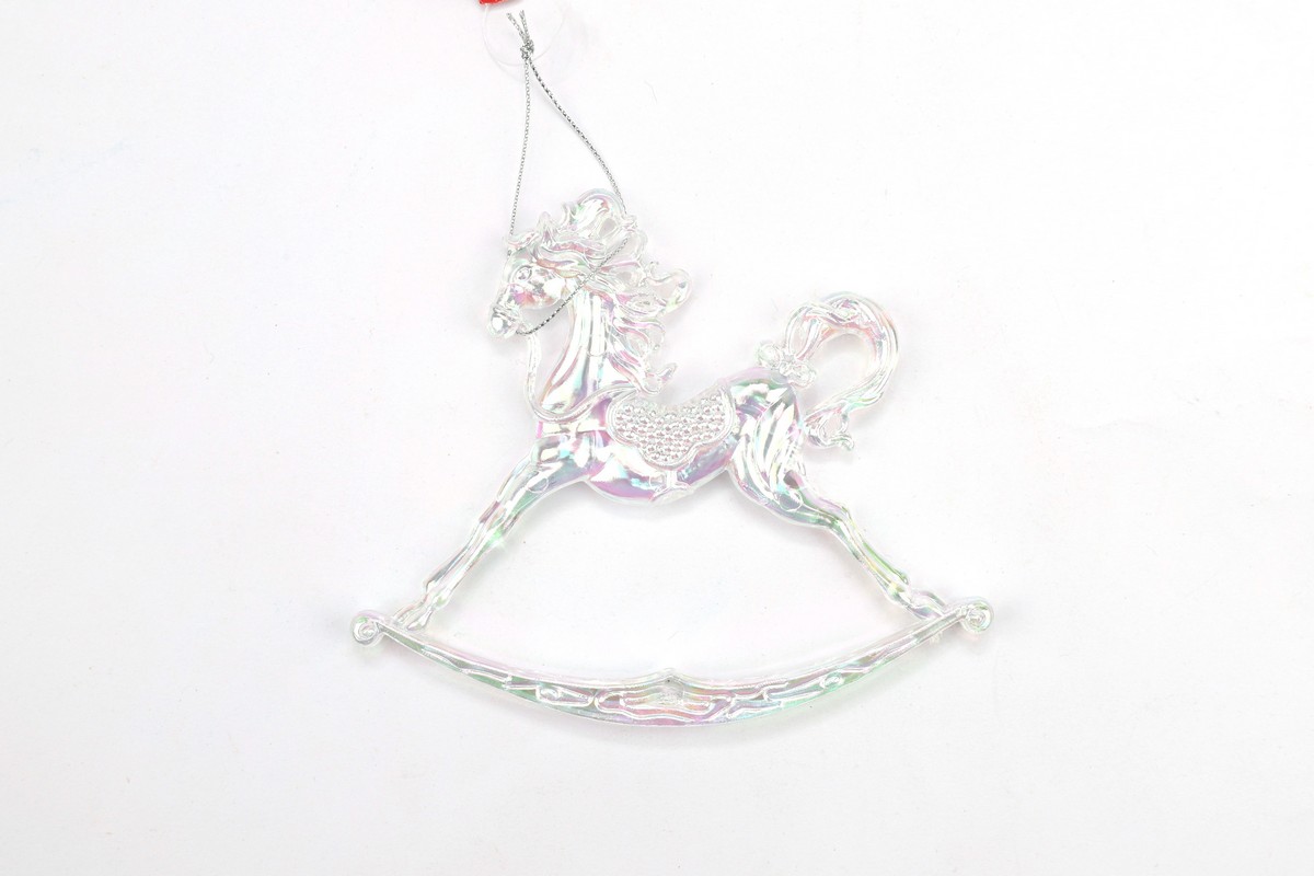 Декоративная подвеска в виде лошадки подойдет для украшения новогодней елочки. Прозрачный перламутровый пластик переливается, отражая все цвета вокруг. Елка, украшенная такими вещицами, выглядит стильно и оригинально. В новогоднюю ночь она будет притягивать к себе детей и взрослых: разглядывать вблизи такие фигурки — одно удовольствие. А еще это прекрасный небольшой подарок, который станет не только украшением сияющий огнями елки, но и сувениром, который может радовать глаз круглый год.