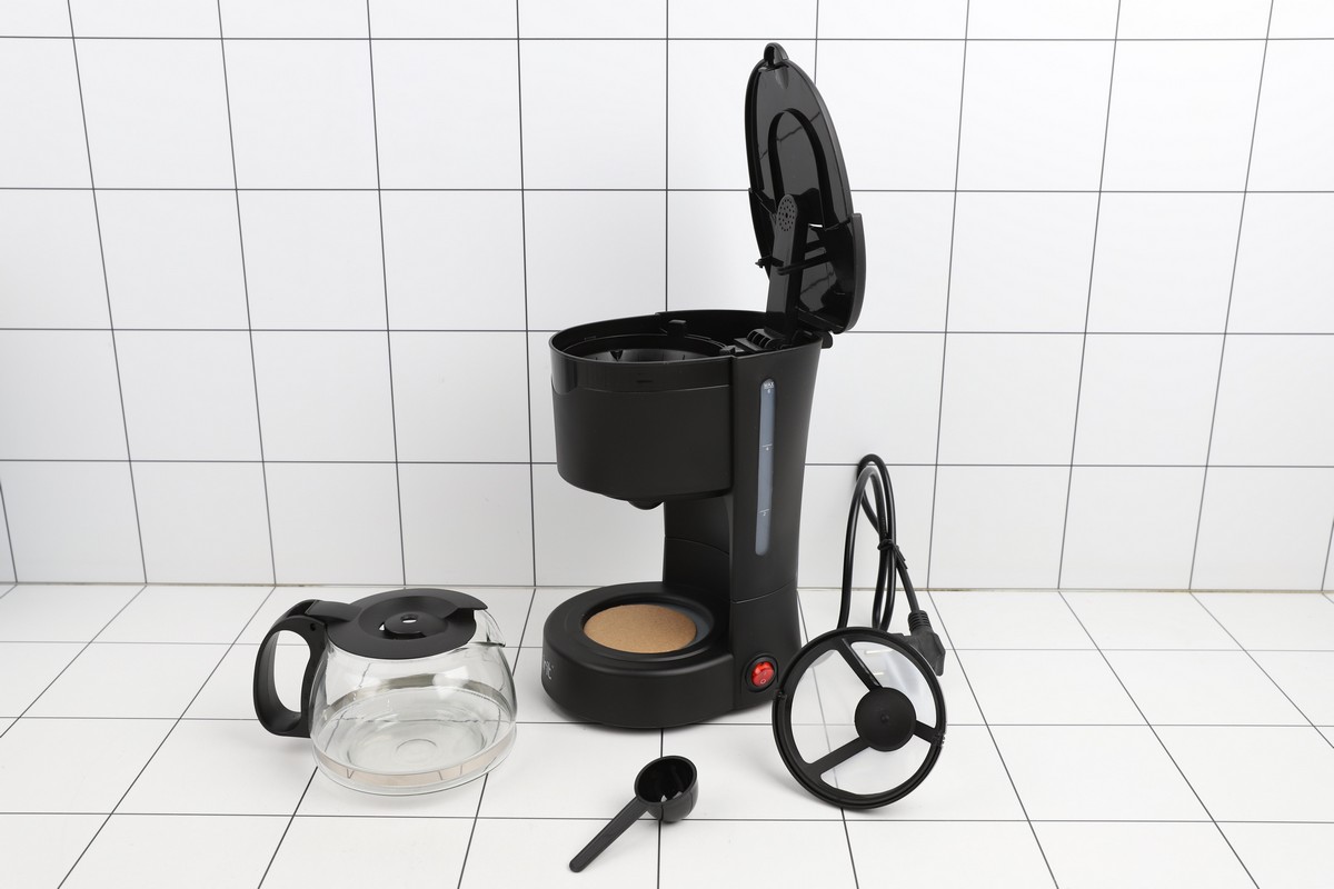 Мощность 600 Вт. Объем 0,6 л. Противокапельная система Кнопка включения со световым индикатором работы Платформа для поддержания температуры Съемный моющийся фильтр с держателем Шкала уровня воды