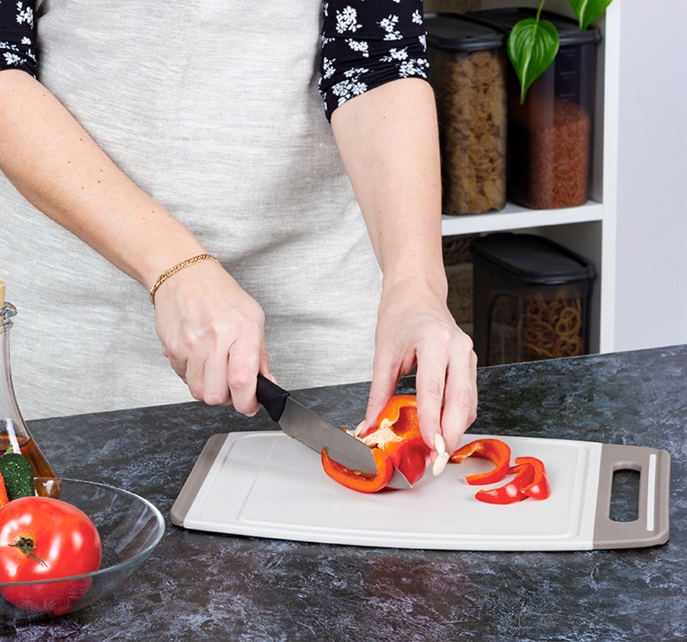 Большой размер и толщина, удобные ручки, антискользящие вставки, долговечный и износостойкий материал, желобки для отвода влаги и сока – это важные преимущества, которые обеспечивают комфортные условия для нарезки любых продуктов. Разделочные доски с противоскользящими вставками – это максимум безопасности в работе с острыми ножами. Вставки обеспечивают устойчивость досок и полностью обездвиживают их. Увеличенная толщина доски обеспечивает надёжность в использовании. На ней можно отбивать и резать мясо, разделывать рыбу, раскатывать тесто. Доски не впитывают запахи и не боятся острых ножей. Можно мыть в посудомоечной машине.
