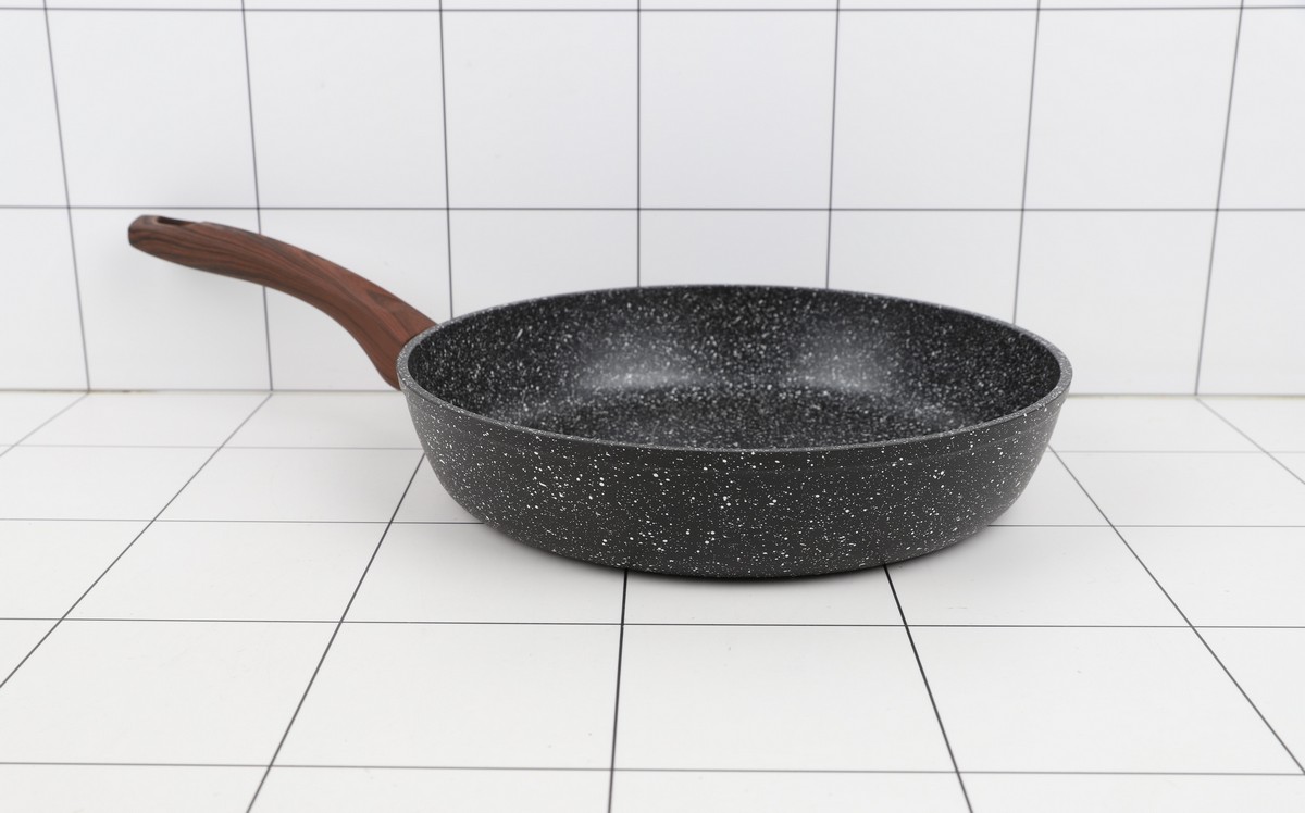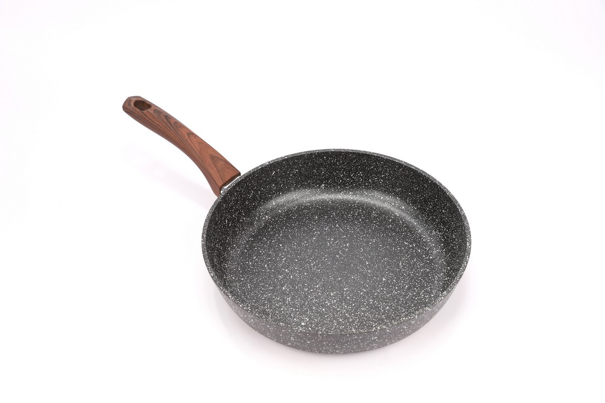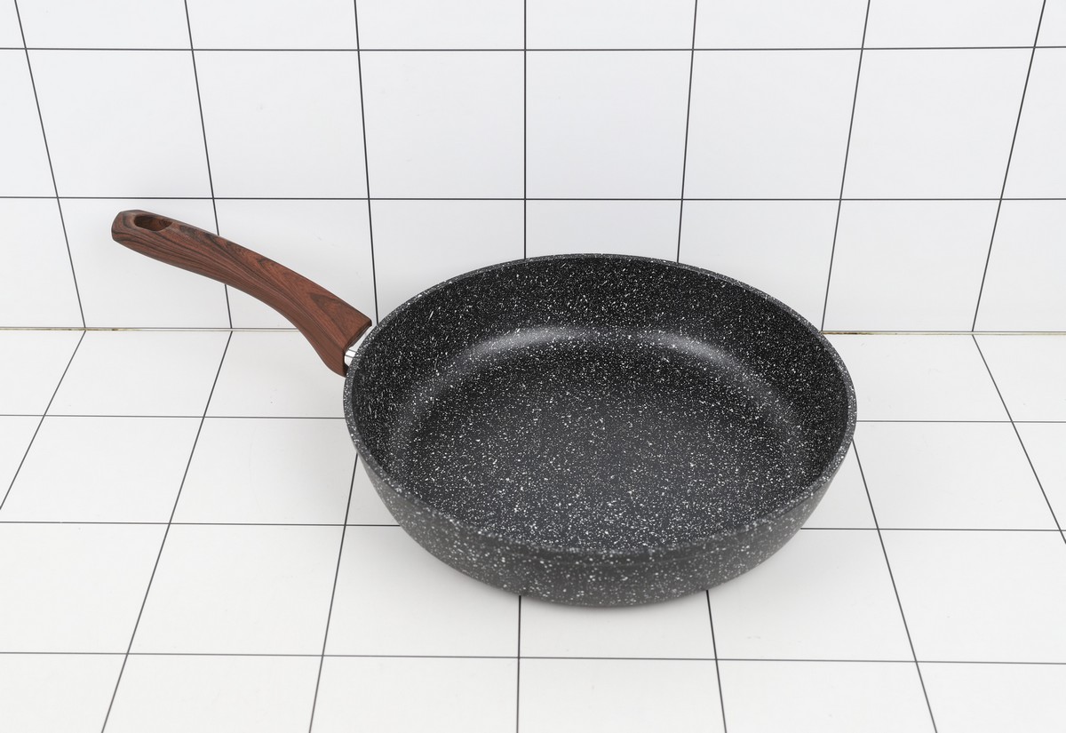 Сковорода а/п литая 28 см с индукционным дном, цвет: чёрный гранит - Толщина стенок 4 мм, толщина дна 6 мм; - Материал изделия: пищевой алюминий; - Ручка с покрытием Soft Touch, имитирующее поверхность дерева; - Внутреннее и внешнее сверхпрочное, гранитное, антипригарное покрытие""ТИТАН&ГРАНИТ"". - Подходит для всех видов плит включая индукционные.