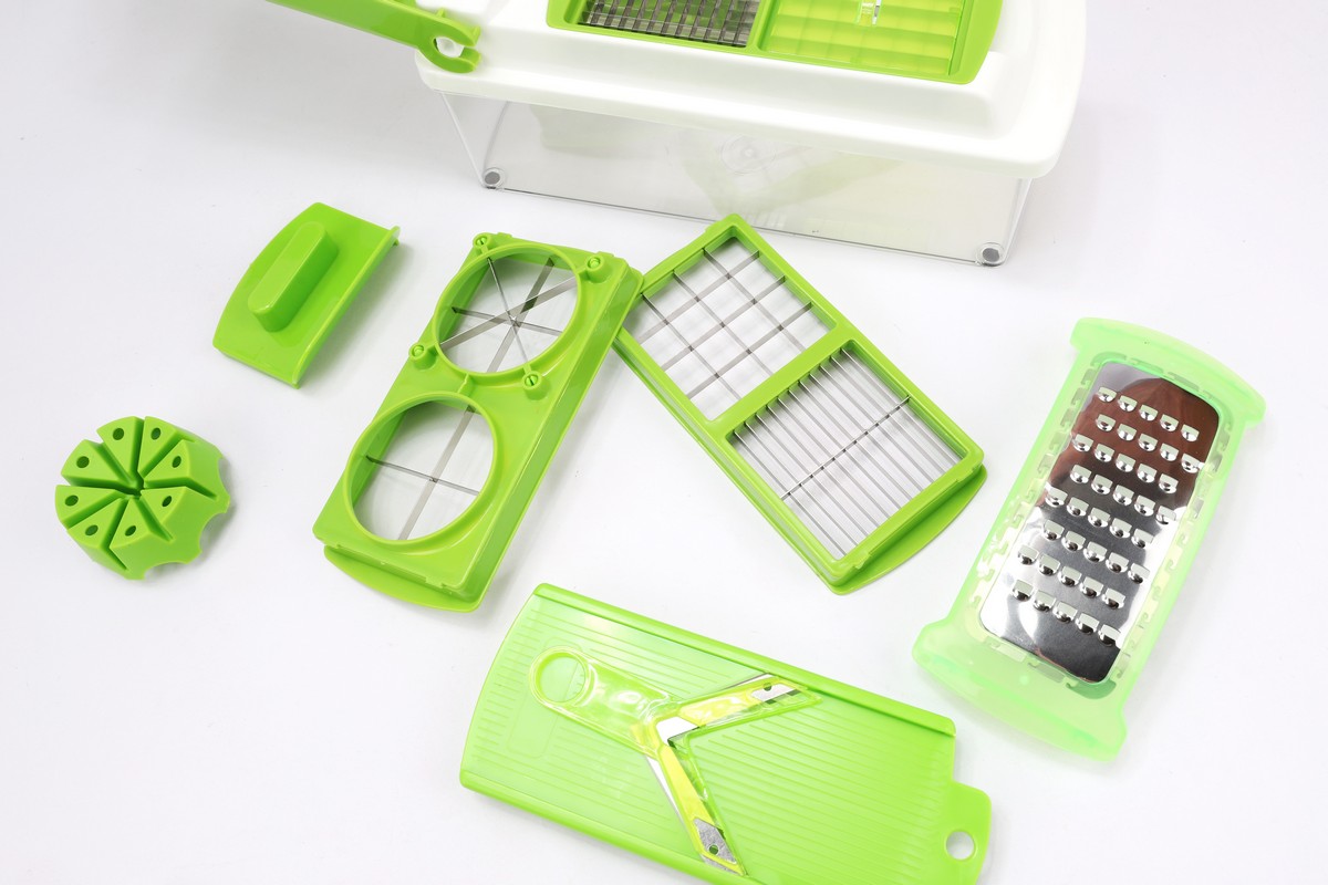 Откройте для себя удобство и эффективность с овощерезкой с насадками и лотком! Произведенная в Китае, эта многофункциональная кухонная помощница станет незаменимым инструментом для любителей здорового питания. Благодаря разнообразным насадкам, вы с легкостью сможете нарезать овощи и фрукты любых форм и размеров, экономя свое время. Вместе с удобным лотком, который служит емкостью для нарезанных продуктов, поддержание чистоты на кухне становится проще. Порадуйте себя и своих близких вкусными и полезными блюдами с минимальными усилиями!
