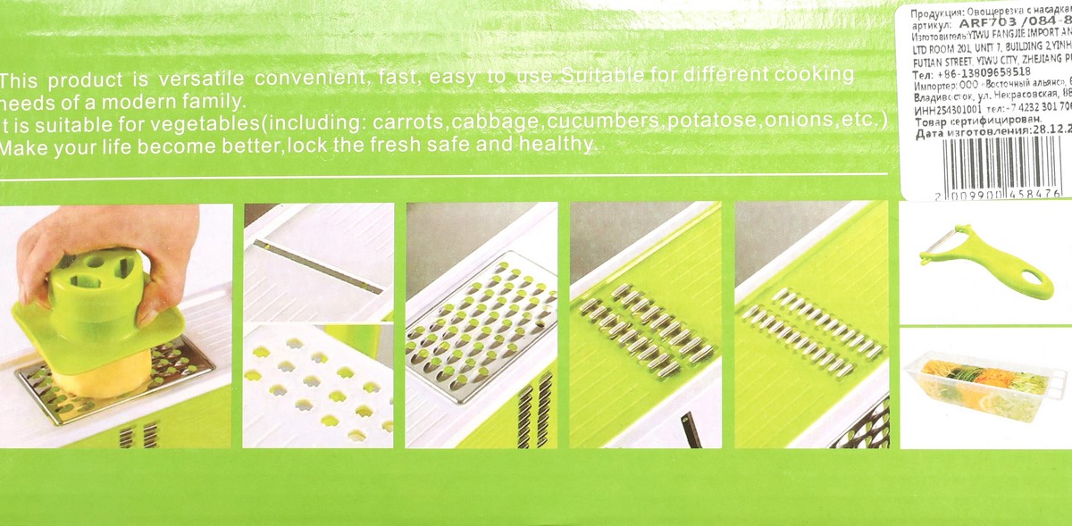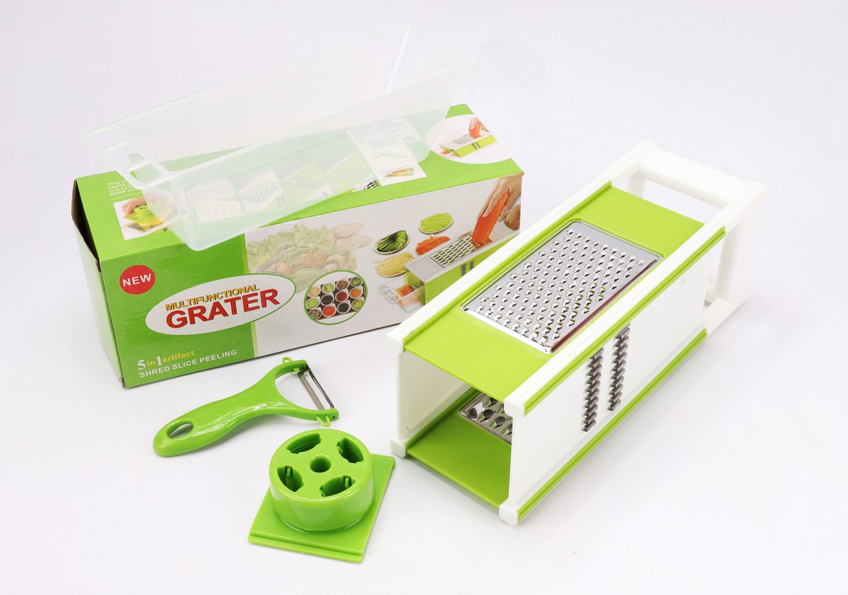 Овощерезка 5 в 1 с лотком – ваш незаменимый помощник на кухне! Идеальное решение для быстрой и удобной нарезки овощей, фруктов, сыра и даже колбасы. В комплект входят 5 разнообразных насадок, позволяющих делать нарезку различной формы и размера. Продукция изготовлена в Китае из высококачественных материалов, обеспечивая долговечность и безопасность в использовании. Встроенный лоток удобно собирает нарезанные продукты, делая процесс приготовления блюд еще проще и приятнее. Упростите свою кухонную рутину с нашей овощерезкой!