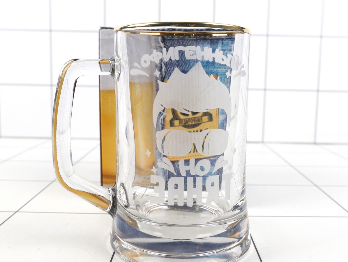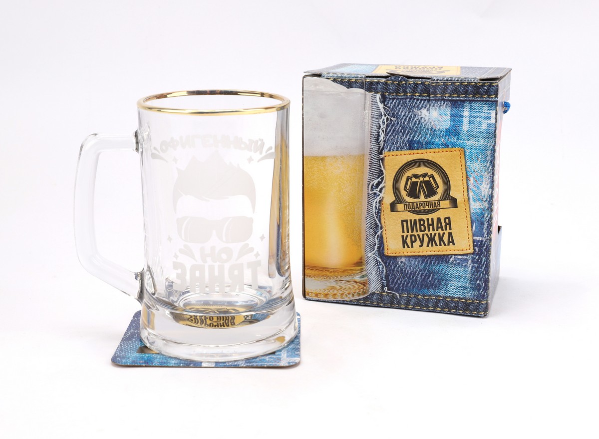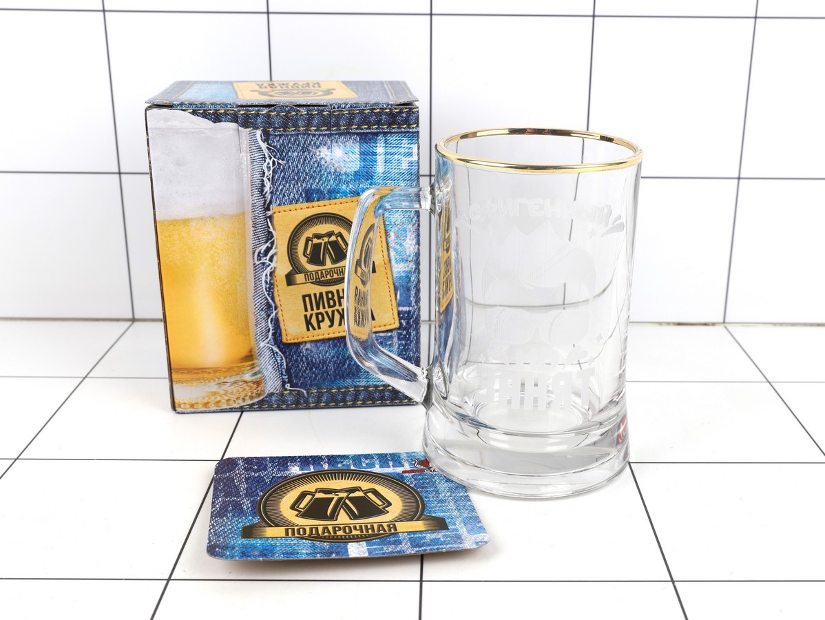 Кружка для пива вместимостью- 500мл. (+запас для пены). Надпись нанесена гравировкой. Упакована в цветную подарочную коробку с шнурком для удобства переноски. Внутри коробки лежит Бирдекель (подставка под кружку). Идеально подходит для подарка на любой праздник.
