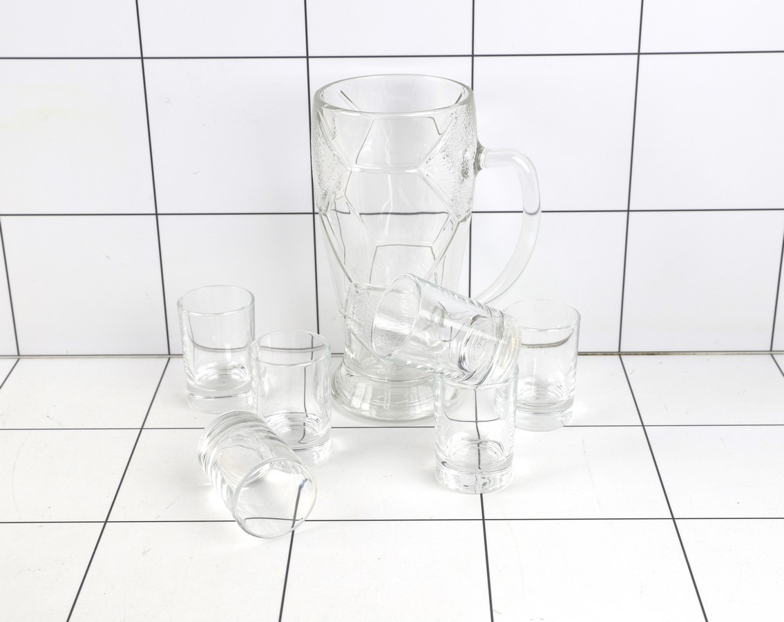 Набор "Лига" - идеальное сочетание традиций и качества. Включает 6 стопок объемом 50 мл и одну кружку 500 мл. Изготовлено в России, отличается высоким качеством материалов без декора, что подчеркивает его элегантность и универсальность. Идеален для домашнего бара или в качестве подарка. Подойдет для любых напитков.