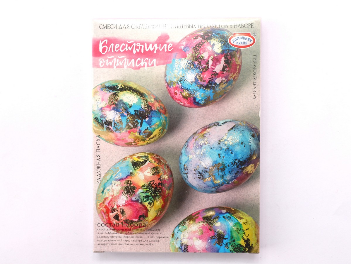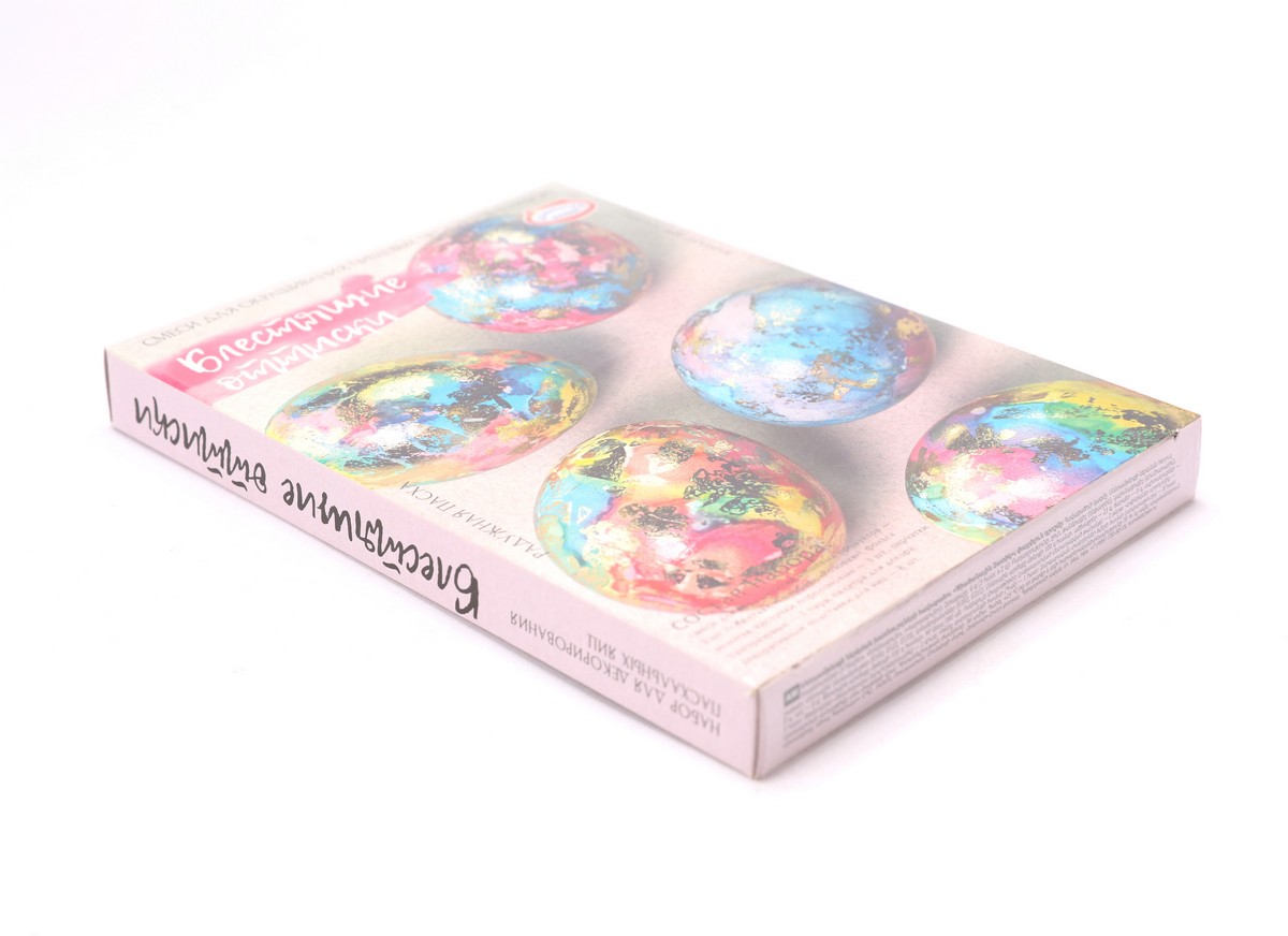 Набор для окрашивания и декорирования пасхальных яиц. Окрасьте яйца, а потом задекорируйте их кружочками-стикерами с глиттером. Можно создавать разные композиции, комбинируя цвет яйца и цвет кружочков, а также делать различные узоры из кружочков.