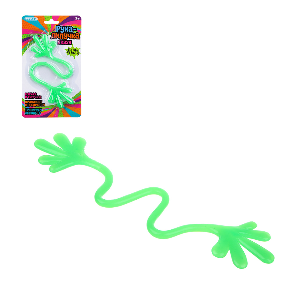 Лизун-липучка в виде руки от ИГРОЛЕНД создана для шалостей, ее оценит каждый ребенок. Мягкая и тягучая, она прилипает к предметам. С помощью нее можно тренировать ловкость и попытаться стянуть какой-нибудь предмет. Ее приятно растягивать в руках, она отлично снимает напряжение после учебного дня. На выбор 4 цвета.