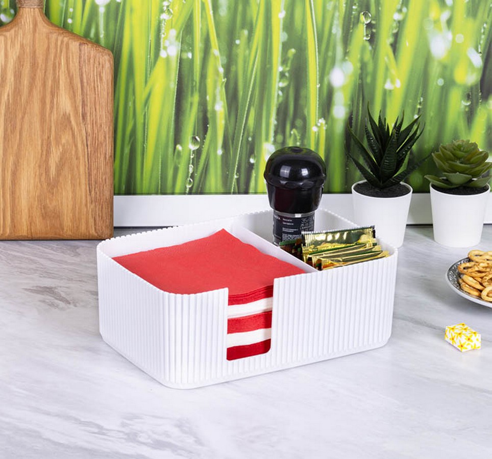 Оживите свой стол с изящной салфетницей Стрип 3 секции М1188 в непревзойденном белом цвете! Этот стильный аксессуар, выполненный из качественных материалов, не только украсит вашу сервировку, но и обеспечит удобное хранение салфеток, благодаря трем функциональным секциям. Идеальное решение для любого случая, будь то повседневное использование или особые события. Салфетница Стрип станет не только практичным, но и элегантным дополнением к вашему интерьеру. Создайте атмосферу уюта и гостеприимства с каждой деталью!