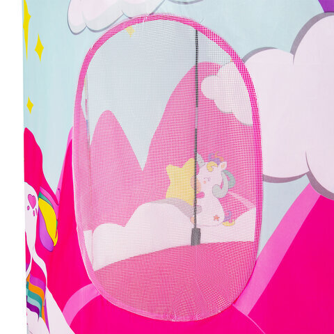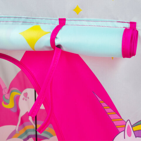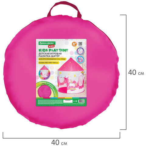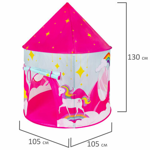 Детская игровая палатка-шатер BRAUBERG KIDS предоставляют детям идеальное индивидуальное пространство для игр, движения, веселья с друзьями, чтения или сна. Она подходит для использования в помещении или на улице. Детская игровая палатка-шатер BRAUBERG KIDS представляет собой дом для ребенка, который помещается в небольшой сумке размером 40х40х4 см. Механизм палатки частично самораскладывающийся, а частично – требующий небольшой ручной сборки, которая не вызовет затруднений. Размеры палатки в собранном виде – 105х105х130 см. Яркий и красочный дизайн в виде домика с единорогом, который уже многие годы привлекает внимание юных принцесс, не останется незамеченным. Дверь палатки внизу фиксируется липучками, а при необходимости ее можно поднять, свернуть в рулон в верхней части и зафиксировать завязками. У палатки есть дверь и 1 окно, оснащенное москитной сеткой, поэтому в детском домике всегда будет свежий воздух и защита от насекомых и солнца. На текстильном прочном дне внутри палатки уд