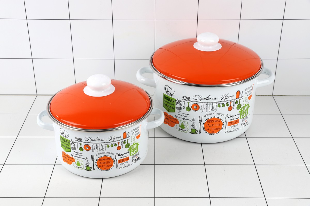 Набор кастрюль "Правила кухни" 3л.5,5л. представляет собой стильный и функциональный набор, который станет незаменимым помощником на вашей кухне. Изготовлен из качественного эмалированного материала, который равномерно распределяет тепло и устойчив к износу. В состав набора входят кастрюли разного объёма, позволяющие готовить разнообразные блюда. Блестящий белый цвет придаёт кастрюлям элегантность и современный вид. Производство Россия, что гарантирует высокое качество и долгий срок службы. Приготовьте ужин для всей семьи с легкостью и удовольствием!
