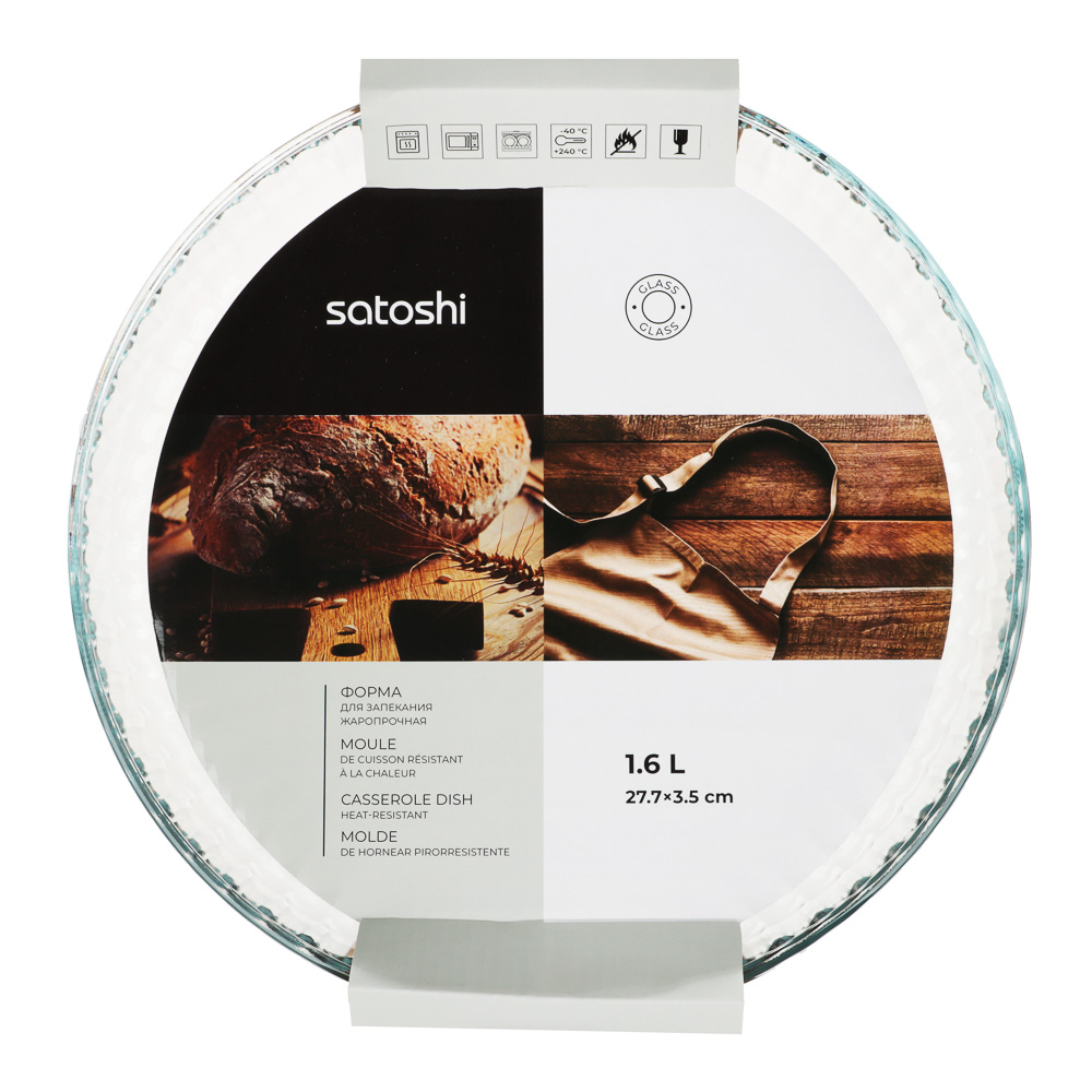 Круглая стеклянная форма SATOSHI 27,7х3,5 см идеально подойдет для приготовления различных блюд в духовке. Ее объем составляет 1,6 л, что позволяет приготовить достаточно большое количество еды за один раз. Изготовленная из качественного стекла, форма гарантирует равномерное прогревание пищи и сохранение всех ее вкусовых качеств. Форма для запекания легко моется. Форма для выпечки станет незаменимым помощником на вашей кухне и поможет вам готовить вкусные и здоровые блюда без особых усилий. Обновите свою коллекцию кухонной утвари с SATOSHI – добавьте товар в корзину!Преимущества стеклянной формы SATOSHI:• жаропрочное стекло;• подходит для выпечки, замораживания, свч;• можно использовать в посудомоечной машине;• не впитывает запахи;• можно использовать в качестве сервировки стола.