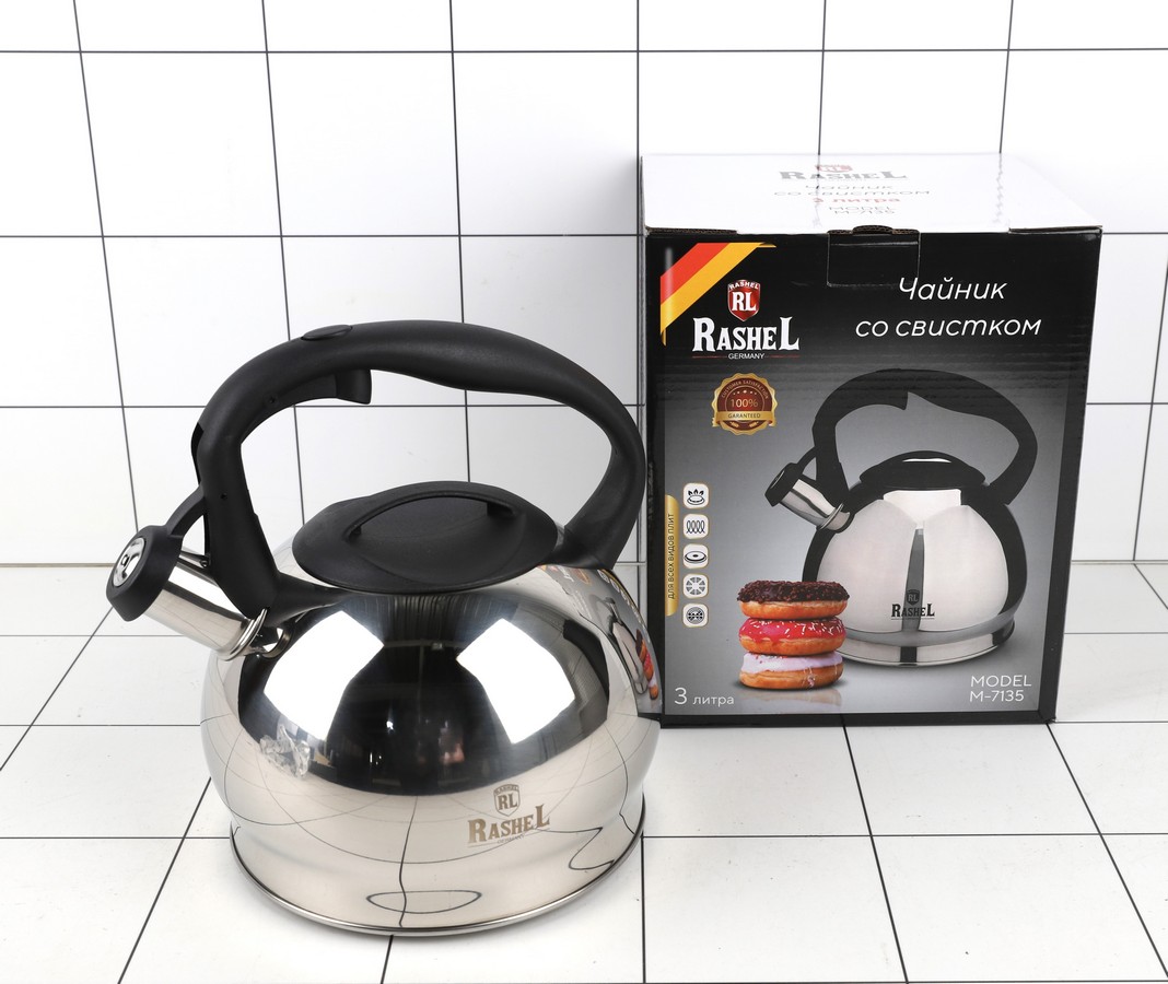 Очаровывающий чайник из нержавеющей стали станет отличным дополнением к вашему утреннему чаепитию. Он обладает вместительностью 3 литра, что позволит приготовить напиток сразу для большой компании. Изготовленный из высококачественной стали, этот чайник не только долговечен, но и устойчив к коррозии. Классический стиль и блестящая поверхность добавят элегантности в вашу кухню. Особенность модели - свисток, который оповестит вас о готовности воды. Произведено в России, что гарантирует надежность и качество продукта.